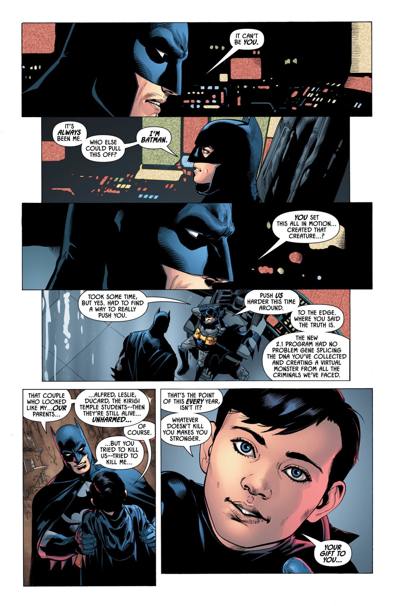 The truth behind the gauntlet Batman has been forced to run-a violent odyssey that endangered the lives of everyone who made him who he is-is revealed at last…and the mastermind working to unmake the Batman must be seen to be believed! Is there a goal here beyond destruction? Will Batman emerge stronger…or with a mortal wound at the exact moment that his most dangerous challenge yet is on the horizon in next month's DETECTIVE COMICS #1000?