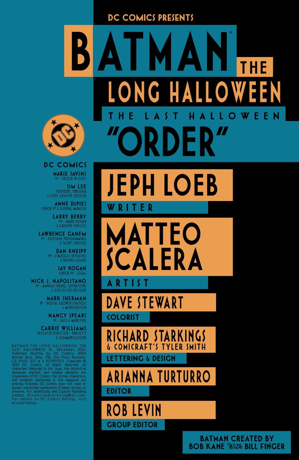 - Cover image for 0725DC166 Batman: The Last Halloween #10 Cover, by (W) Jeph Loeb (A/CA) Matteo Scalera, in stores Wednesday, October 29, 2025 from DC Comics