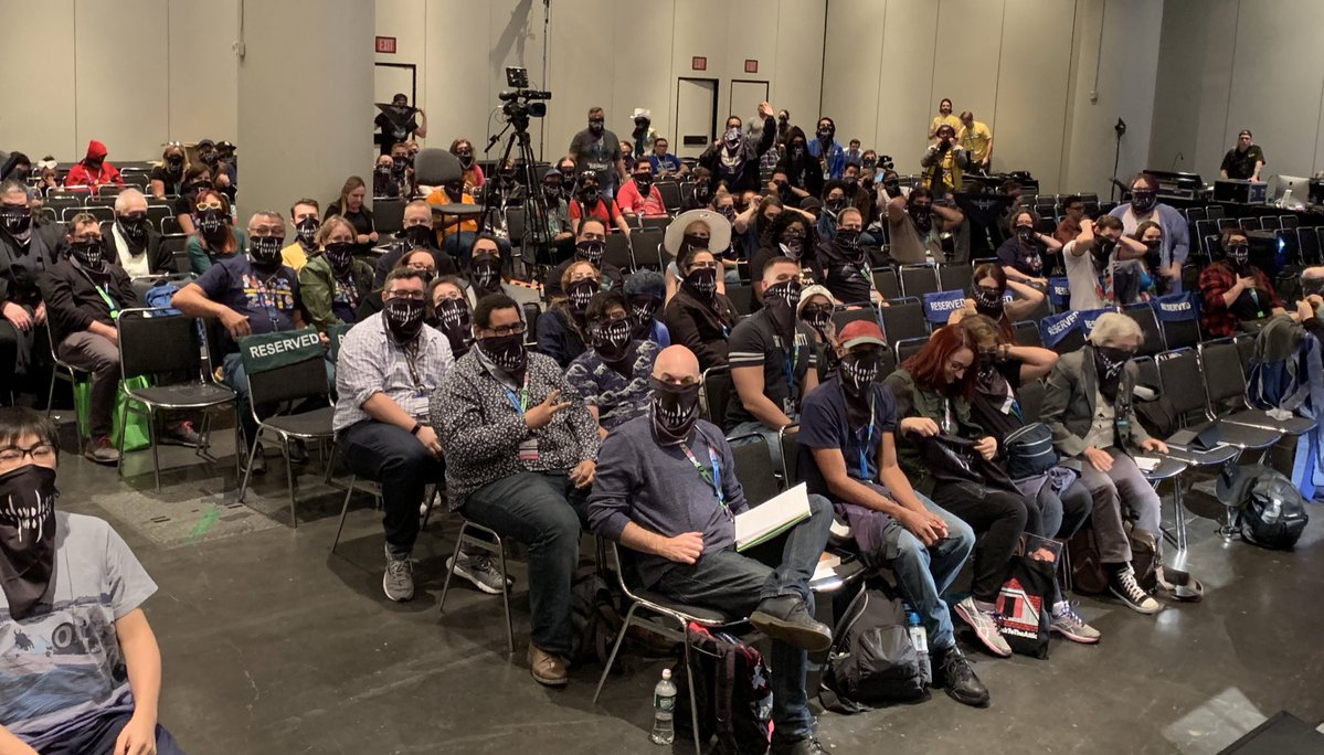 Tynion IV urged the crowd to wear theirs and welcomed the "real" Erica Slaughter from Buffalo comic shop Pulp 716 to lead the crowd in pledging their support to the writer and, uh, killing monsters.