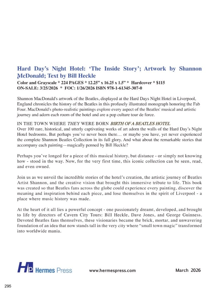 - Hermes Press spotlights The Beatles' Hard Day's Night Hotel art book by Shannon MacDonald and Bill Heckle