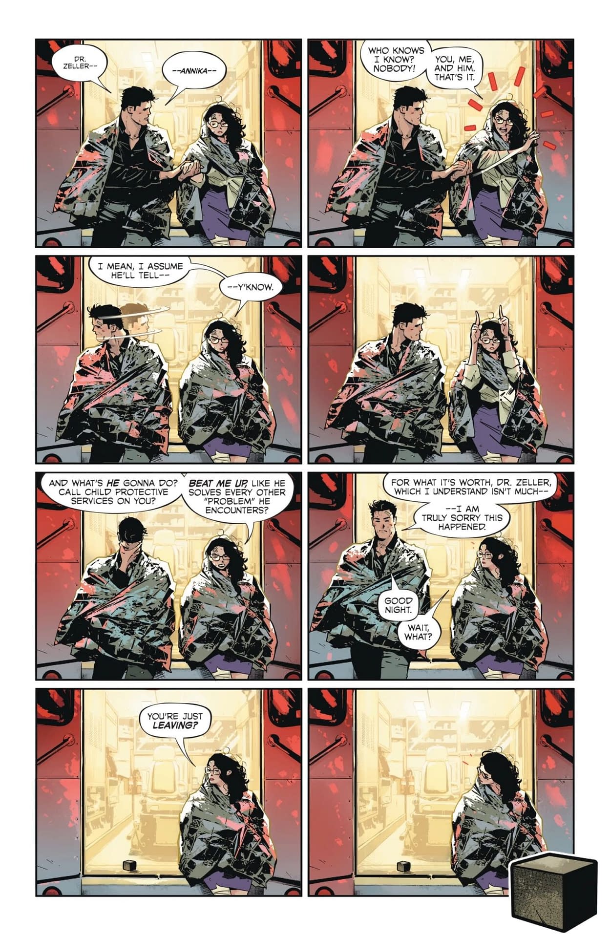 At the end of Batman #5, Bruce Wayne, on a date with Arkham Tower psychiatrist and inventor of a device designed to cure villainy madness, Dr Annika Zeller, were attacked by assassins, only for Bruce to save her out of costume, with a little help from Robin.