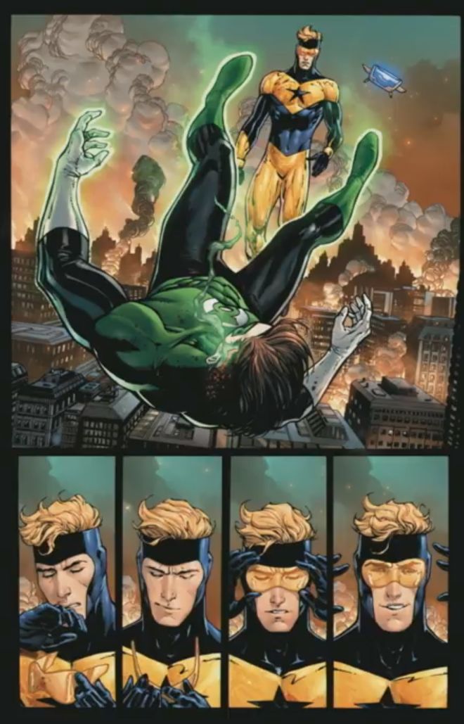 Thought so. Anyway, that was a few panels — this is a few issues. And we have pages. Hal Jordan committing suicide… infected by the Joker? With Gotham in flames?