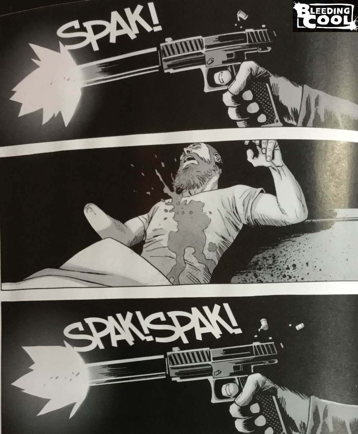 It has been pointed out that there was no way Rick Grimes was going to survive the shot seen in #191. But the opening pages of #192 want to hammer that home. With bullets. This is how it continues.