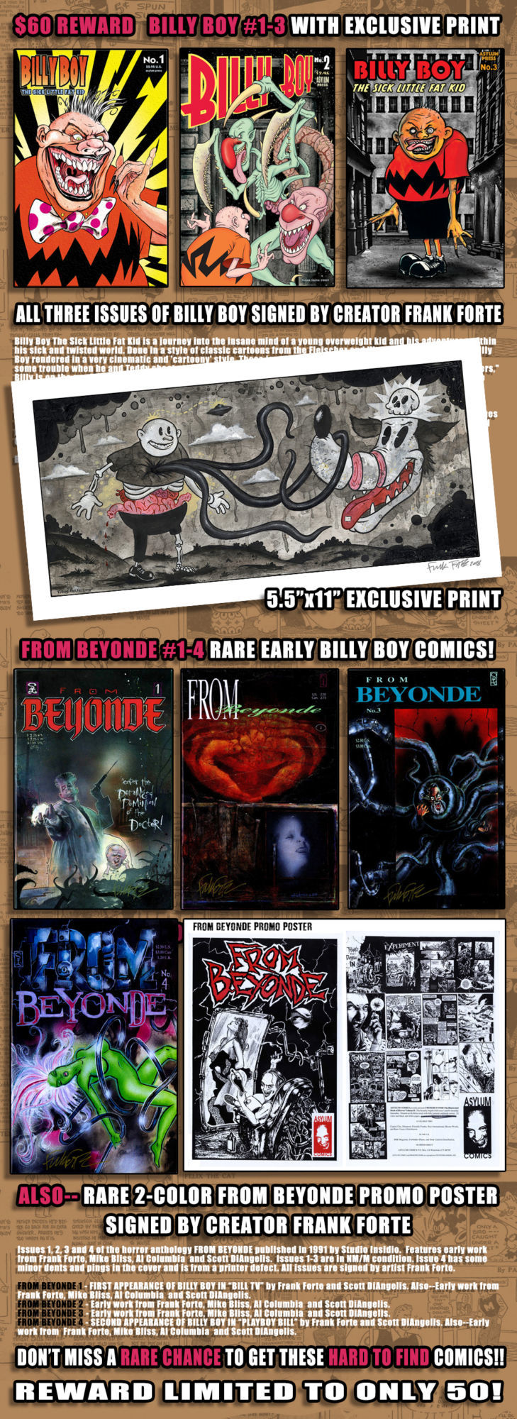 This is a documentation of my Kickstarter journey to fund Billy Boy Comics #3. Billy Boy is a passion project of mine and the character was created while I was in college and first appeared in my self-published comic anthology From Beyonde #1 published in 1991. From Beyonde #1 also featured the debut comic work of Mike Bliss, Scott DiAngelis, and Al Columbia (then going by his pseudonym Lucien).