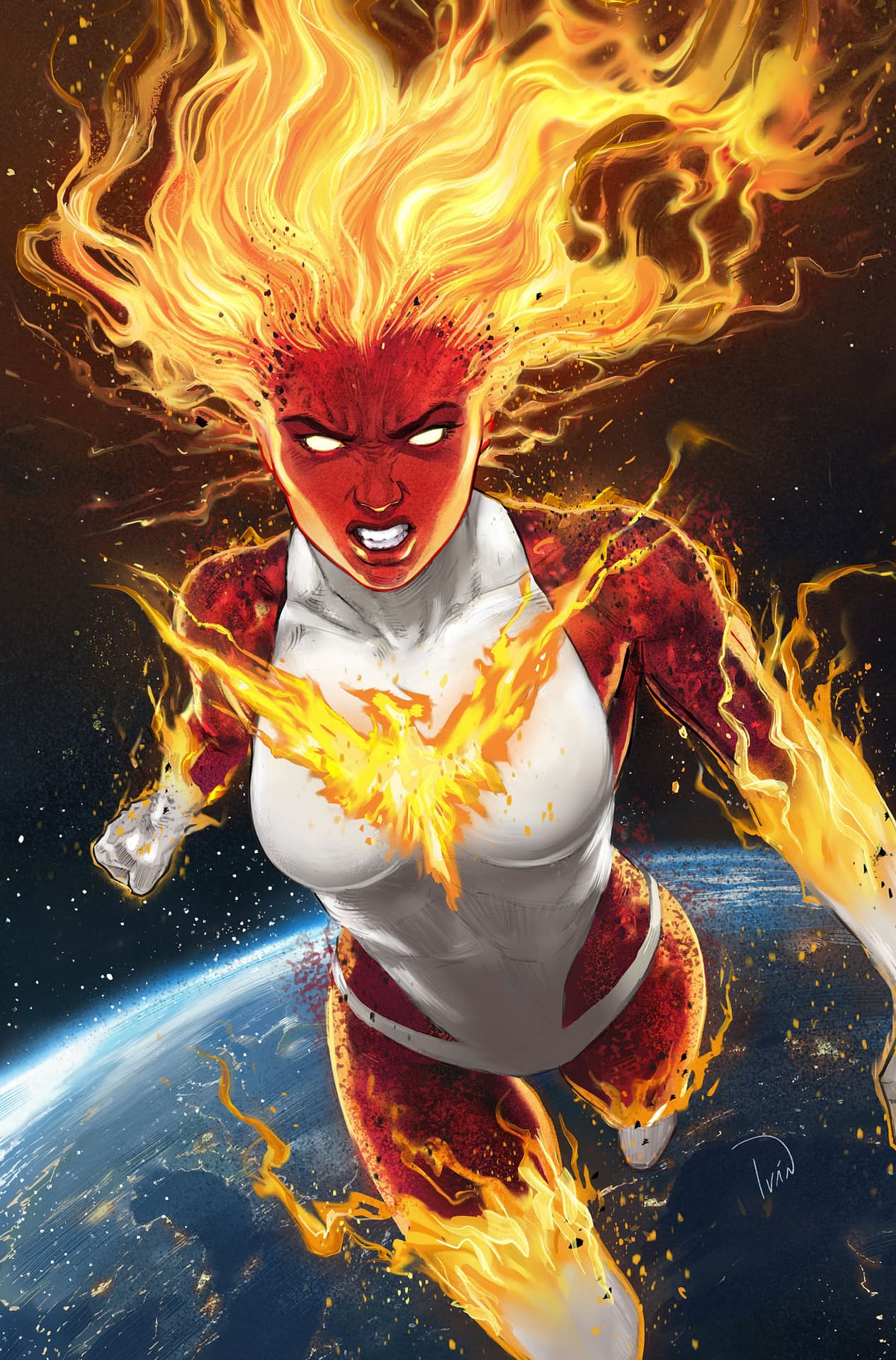 THIS IS BINARY…AND THE UNIVERSE BURNS WITH HER! X YEARS LATER, in the ashes of the old world, to survive she is reborn – a cosmic force channeling the Phoenix itself. With the universe crumbling, BINARY returns to save what's left. But power this great always comes with a price… and the end of everything might begin with her.