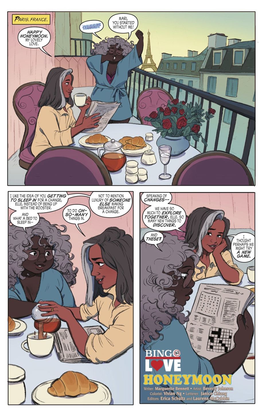 In the second volume, Franklin will be joined by Johnson on art. The book will be titled Bingo Love Vol. 2: Dear Diary, with a story set in the framework of Mari's granddaughter finding her grandmother's diaries. THR scored a preview of Bennett and Johnson's pages from the Jackpot Edition bonus material, which we've copied and pasted below.
