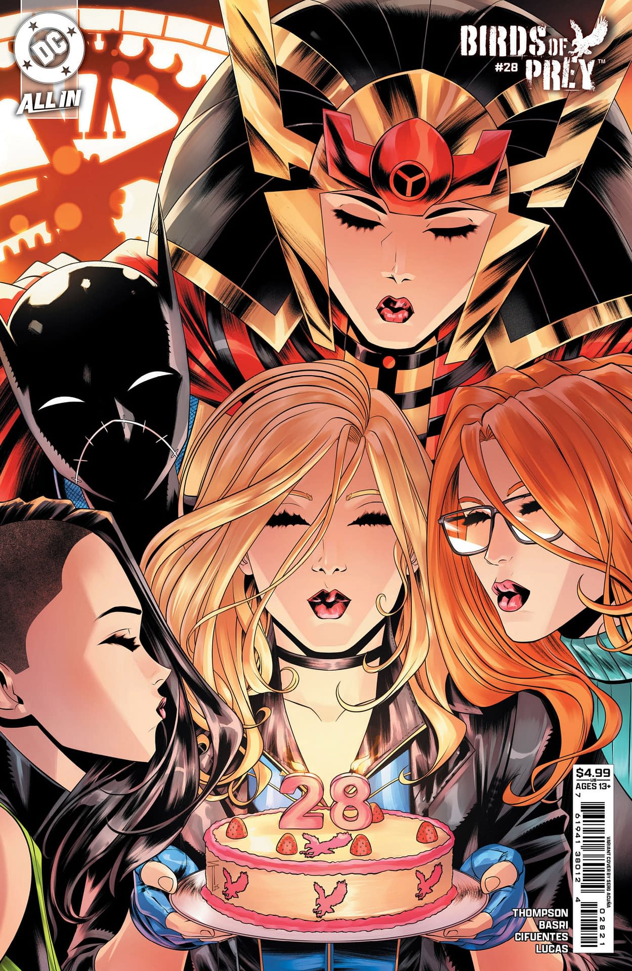 - Cover image for 1025DC0094 Birds of Prey #28 Serg Acuna Cover, by (W) Kelly Thompson (A) Sami Basri (CA) Serg Acuna, in stores Wednesday, December 3, 2025 from DC Comics