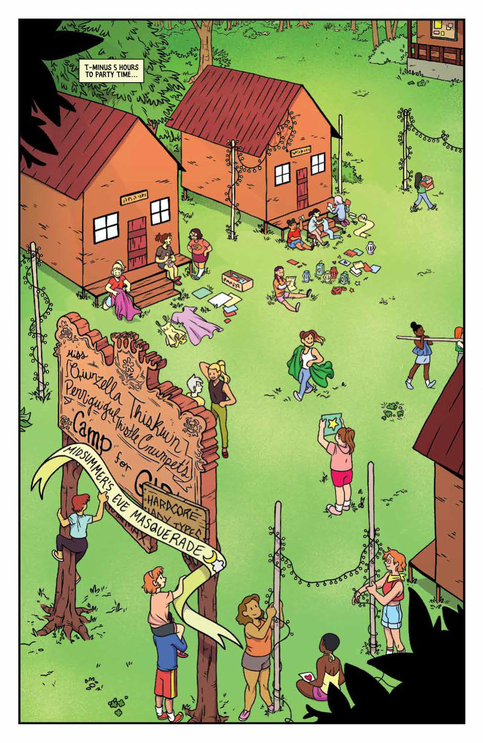 Synopsis: The Midsummer Masquerade and it's not exactly a dream. When the question of a couples costume throws Mal and Molly's relationship into disarray, the rest of the Lumberjanes scramble to help them. And of course now all the decorations are starting to disappear.