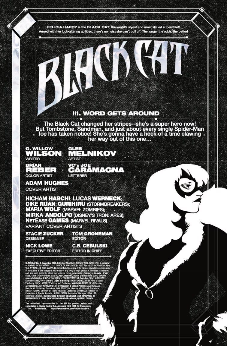 - Cover image for 75960621252100371 BLACK CAT #3 NETEASE GAMES MARVEL RIVALS VARIANT, by G. Willow Wilson & Gleb Melnikov, in stores Wednesday, October 29, 2025 from Marvel