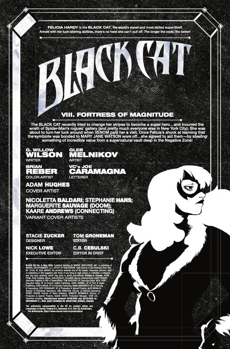 - Interior preview page from 75960621252100811 BLACK CAT #8 ADAM HUGHES COVER, by G. Willow Wilson & Gleb Melnikov & Adam Hughes, in stores Wednesday, March 11, 2026 from Marvel
