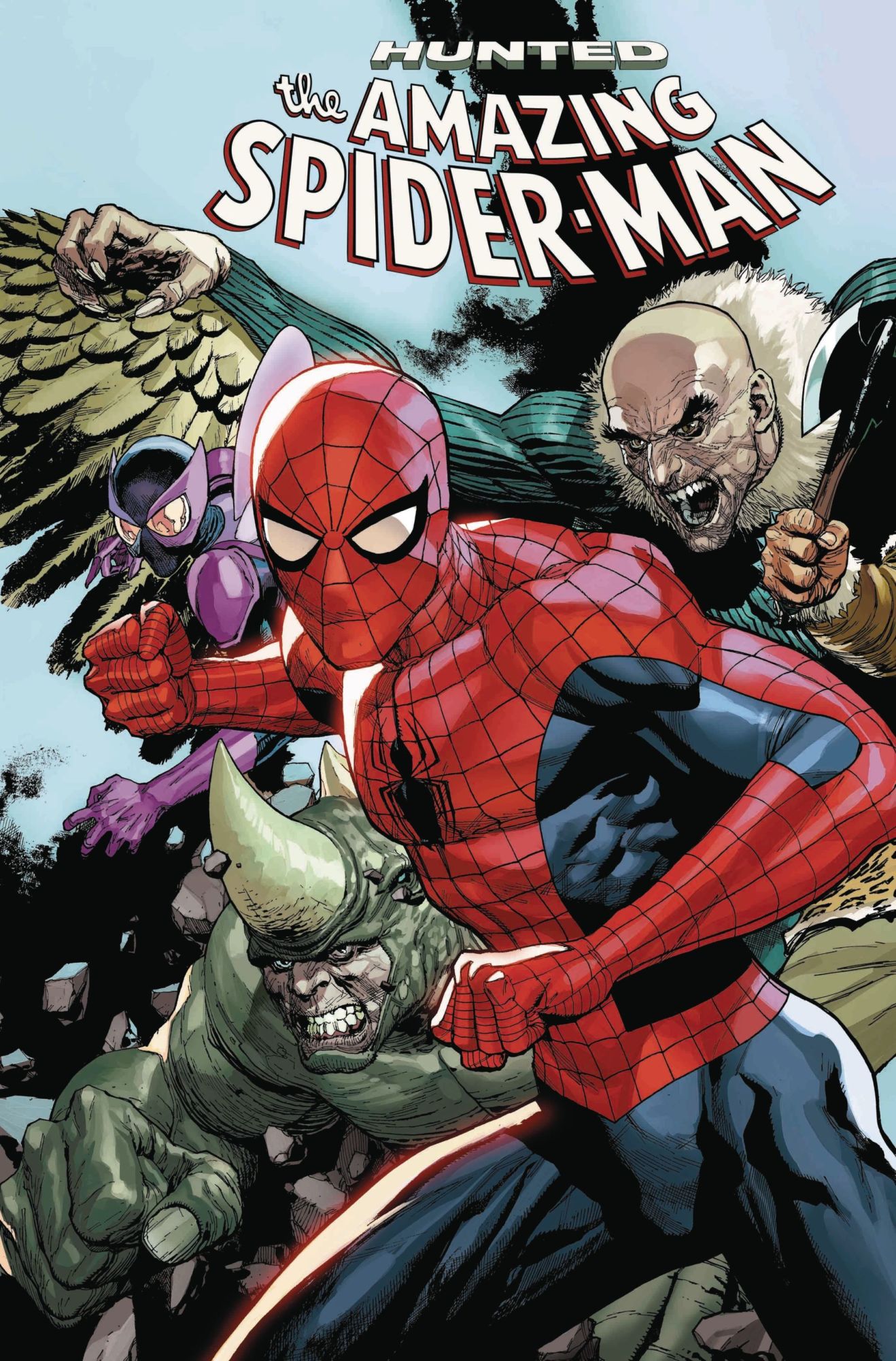 We've been teasing a huge Kraven story since ASM #1 – and "HUNTED" is here to deliver it! Sergei Kravinoff and his minions have been kidnapping animal-themed characters for months, but they need one more to complete the collection – the Spider. But what does Kraven even want with all of them?! Find out in "HUNTED"!