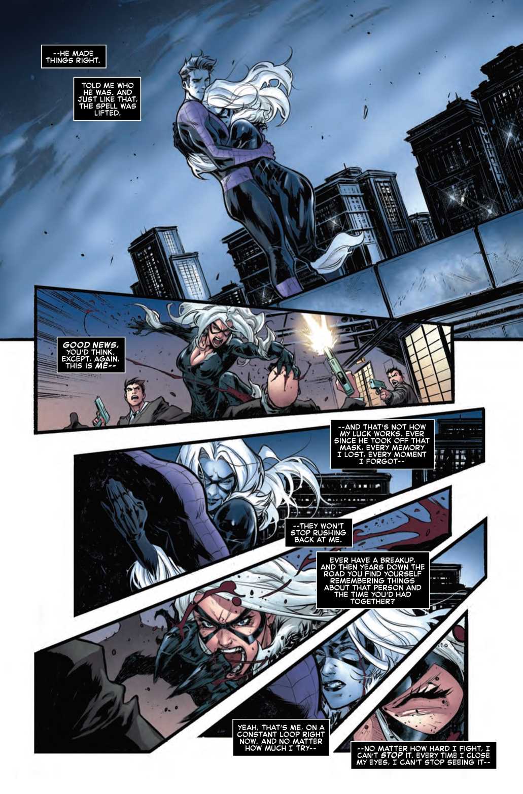In Spider-Man's case, he got Doctor Strange to cast a spell to magic away his big Civil War reveal (this is a pattern for Spider-Man), making everyone in the Marvel Universe forget his identity. That included ex-girlfriends like The Black Cat, who suddenly found herself unable to remember the face of the man she once loved.