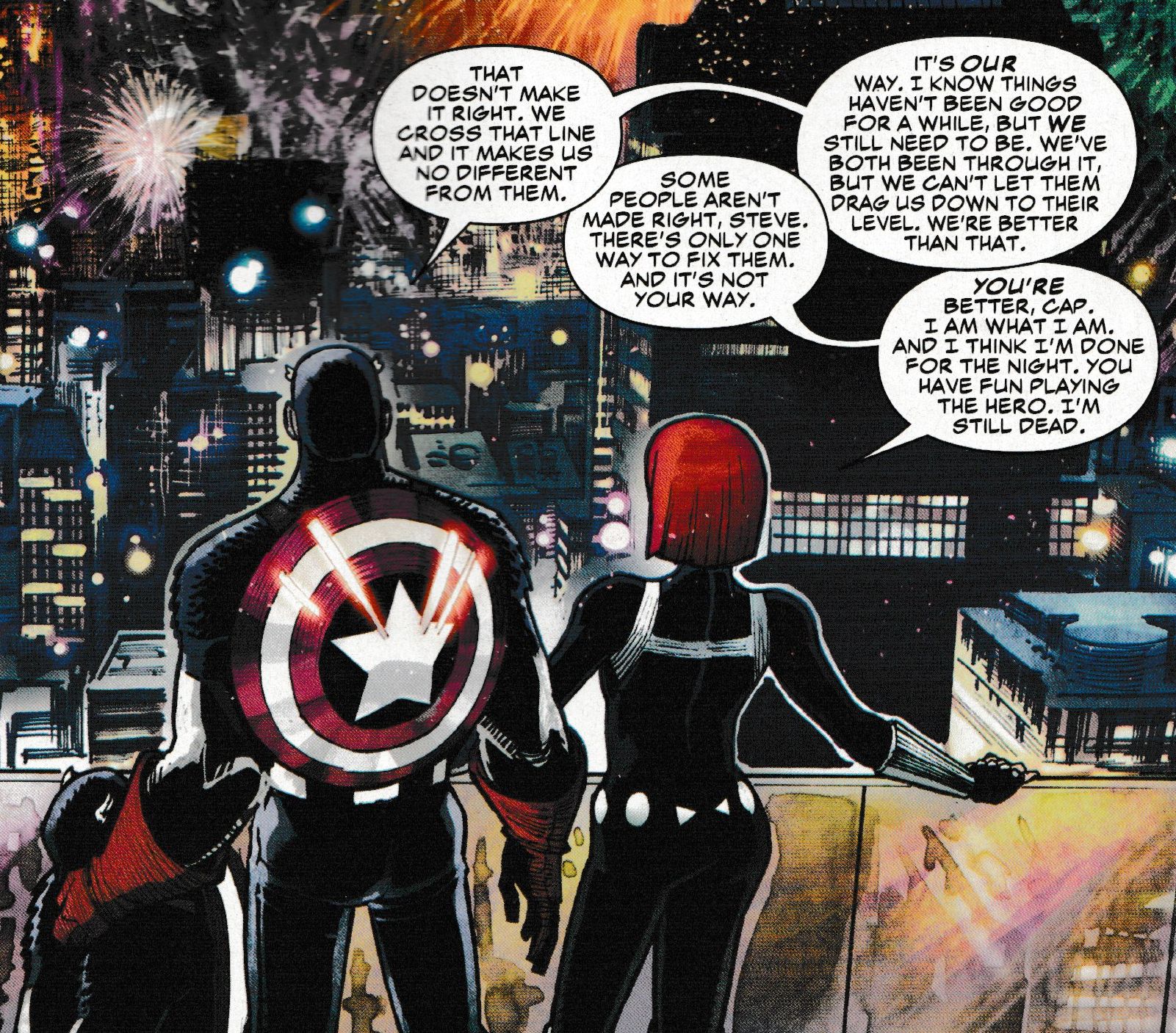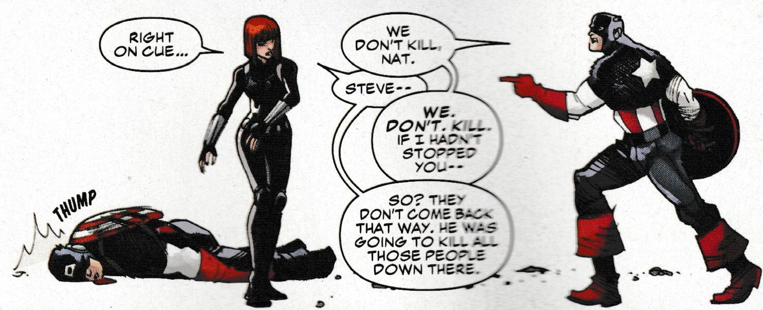 Especially when confronted with another version of Captain America who's also a murderous bad guy. There's a lot of them around it seems. Which gives Steve Rogers the change to eulogize at length.