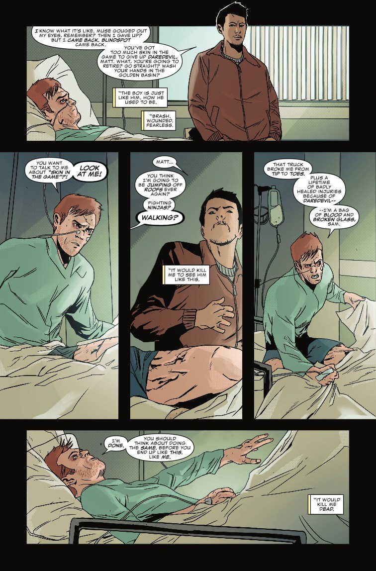In next week's Man Without Fear #2, Daredevil is still reeling from that whole Netflix cancellation thing (we assume that's the reason). In fact, he's so distraught, he's given up being Daredevil for good. For real this time. No more Daredevil. Definitely permanent. The Daredevil universe will never be the same again!