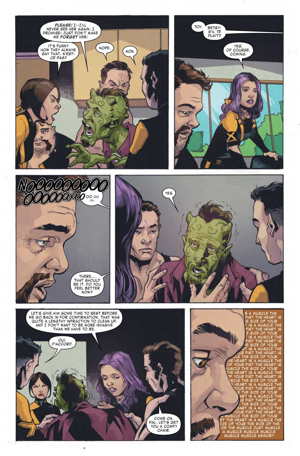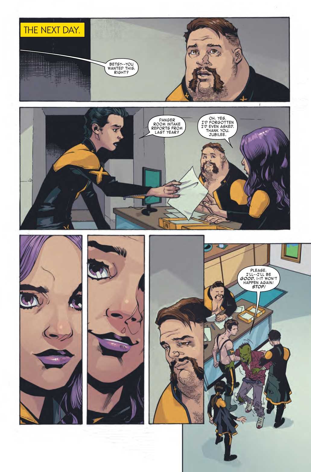 In the Age of X-Man, personal relationships, especially romantic and sexual ones, are outlawed, and Department X is tasked with tracking down anyone who engages in one and reformatting their brains. That's why it was so shocking when, in Age of X-Man: X-Tremists #2, Department X member Blob revealed his secret crush on Psylocke, the chief mind-wiper… and even more shocking when Betsy seemingly revealed that she yearns for Blob in return. And in this preview of Age of X-Man: X-Tremists #3, we pick up right where we left off…