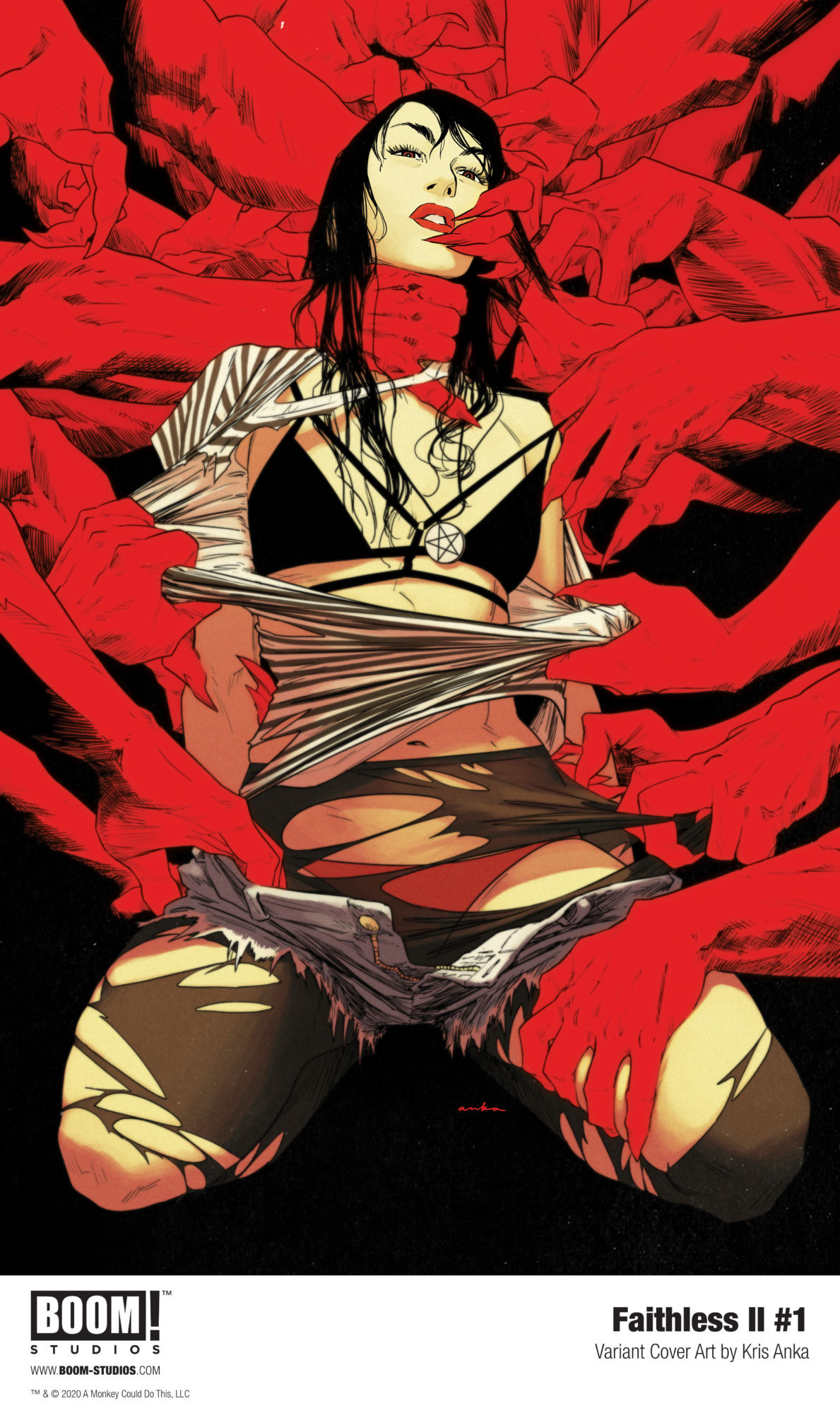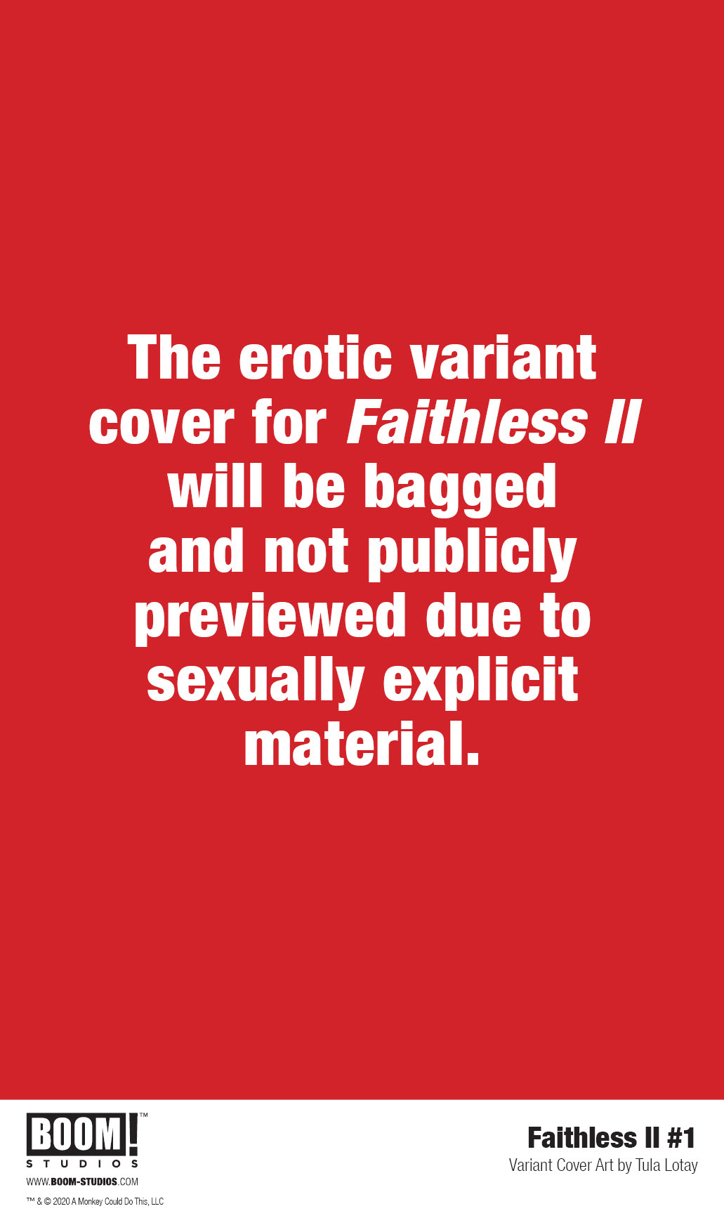FAITHLESS II #1 debuts this year on April 22, 2020, featuring main cover art by series artist Llovet and the first in a series of six erotic variant connecting covers by acclaimed artist Tula Lotay (Black Widow) that will be polybagged and not publicly previewed due to sexually explicit material. Each erotic variant cover will be limited to its initial print run and will not be reprinted or collected in any subsequent formats. All issues of FAITHLESS II will continue this variant cover program with similar content, limited release, and packaging.