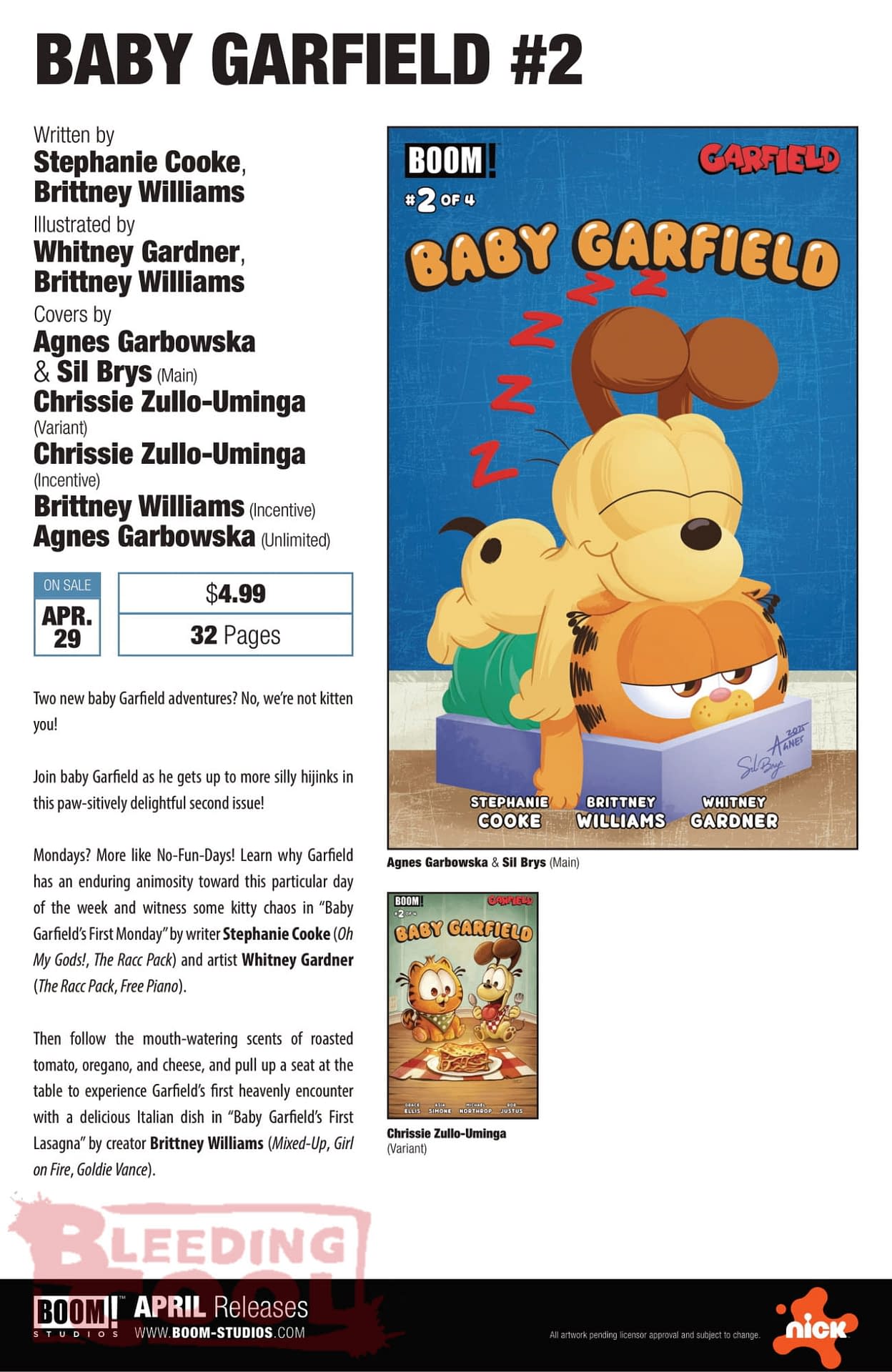 Then follow the mouth-watering scents of roasted tomato, oregano, and cheese, and pull up a seat at the table to experience Garfield's first heavenly encounter with a delicious Italian dish in "Baby Garfield's First Lasagna" by creator Brittney Williams (Mixed-Up, Girl on Fire, Goldie Vance).