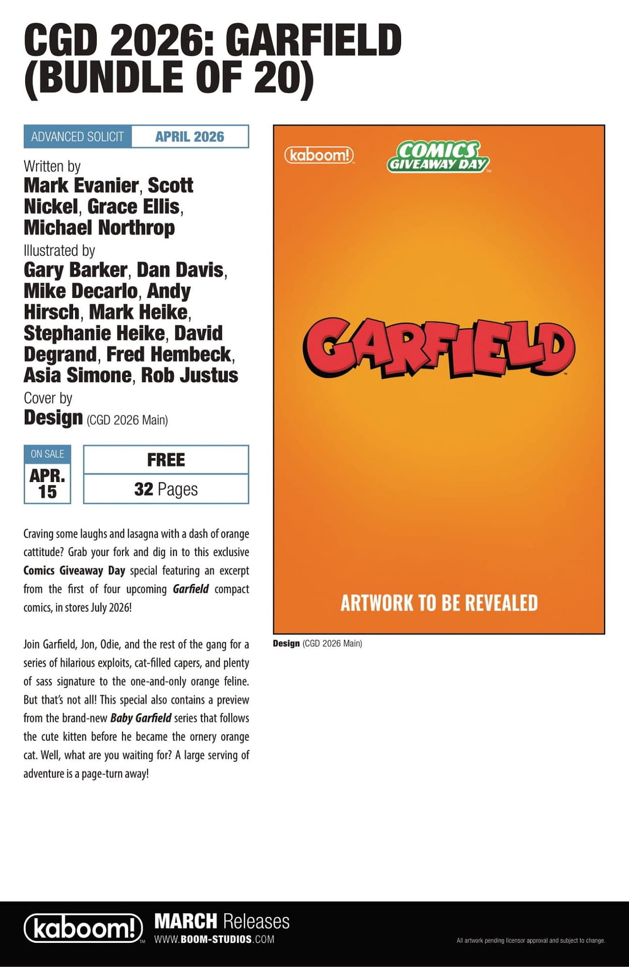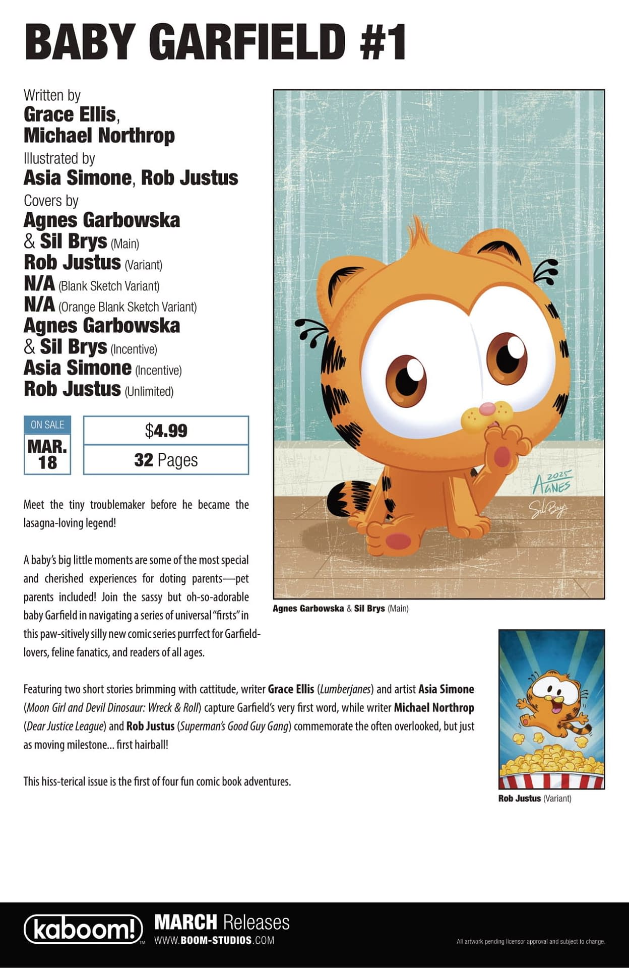 - Baby Garfield #1 debuts as Boom Studios' March 2026 solicits launch a new era for the iconic orange cat