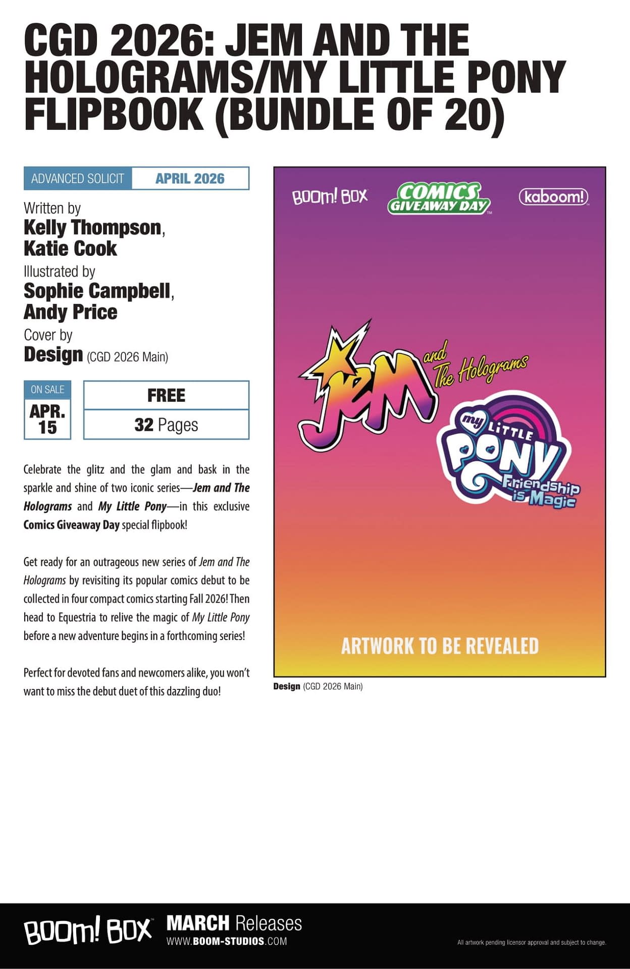 Get ready for an outrageous new series of Jem and The Holograms by revisiting its popular comics debut to be collected in four compact comics starting Fall 2026! Then head to Equestria to relive the magic of My Little Pony before a new adventure begins in a forthcoming series!