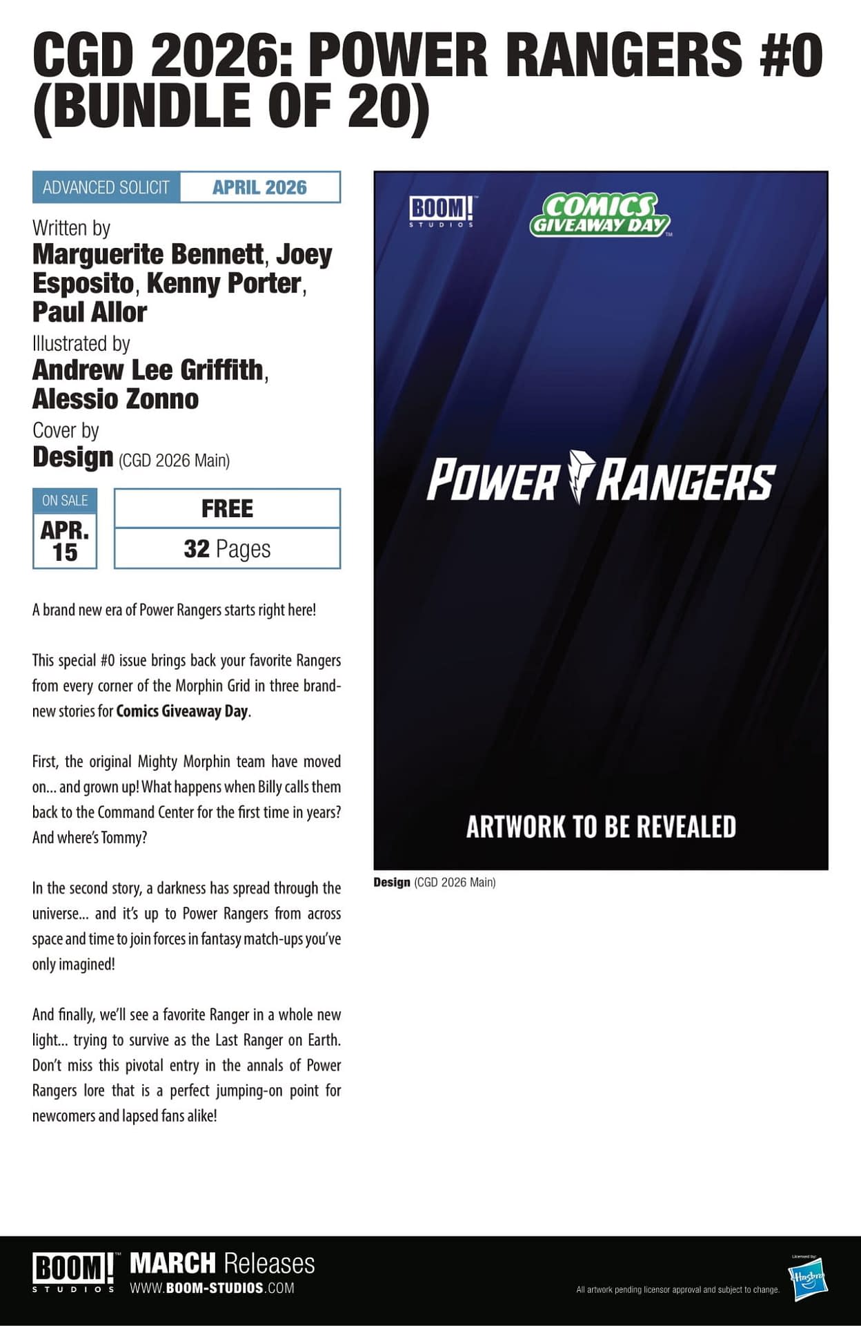 Cover by Design (CGD 2026 Main) - CGD 2026: POWER RANGERS #0 (BUNDLE OF 20)