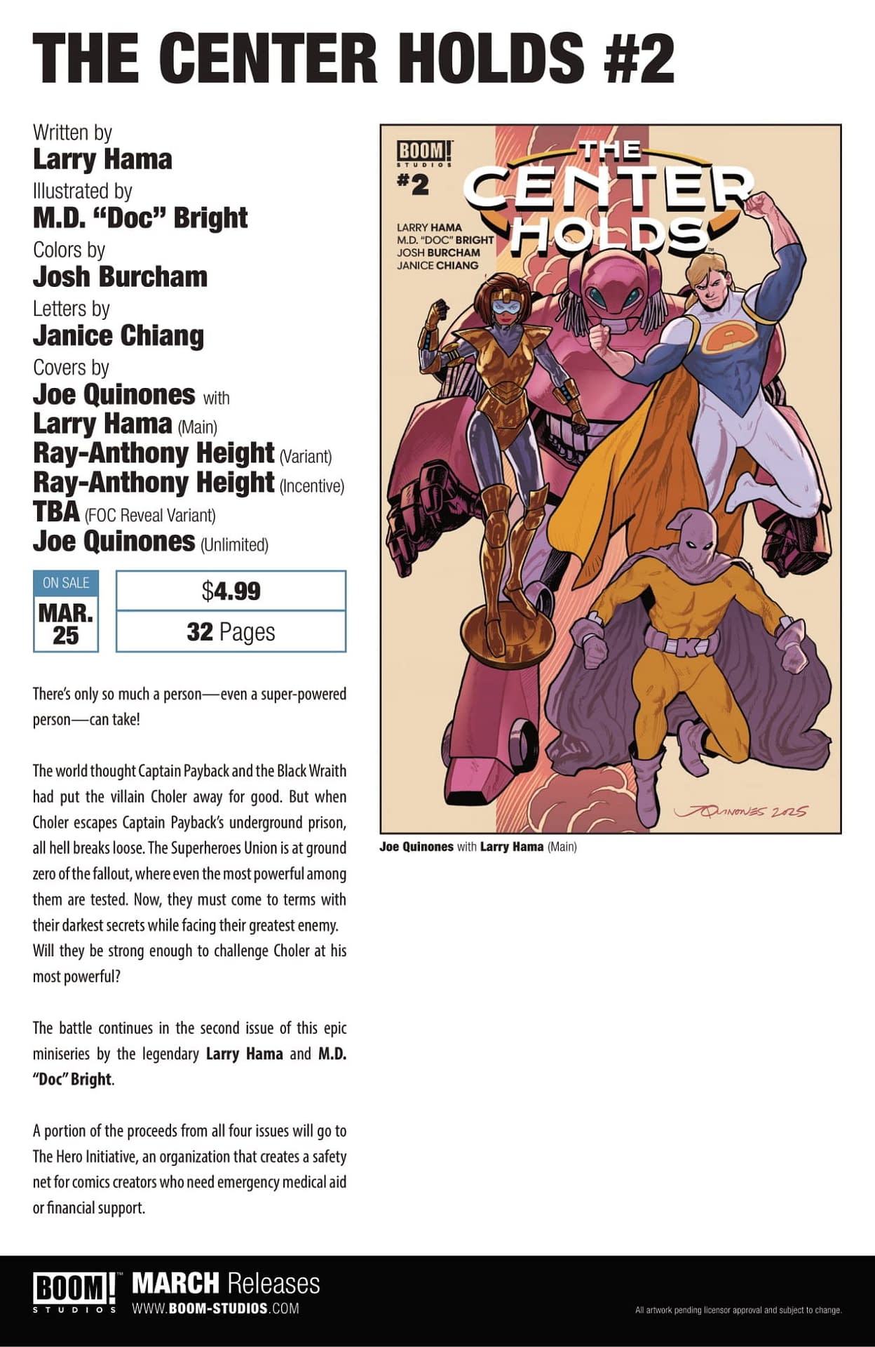 The world thought Captain Payback and the Black Wraith had put the villain Choler away for good. But when Choler escapes Captain Payback's underground prison, all hell breaks loose. The Superheroes Union is at ground zero of the fallout, where even the most powerful among them are tested. Now, they must come to terms with their darkest secrets while facing their greatest enemy.