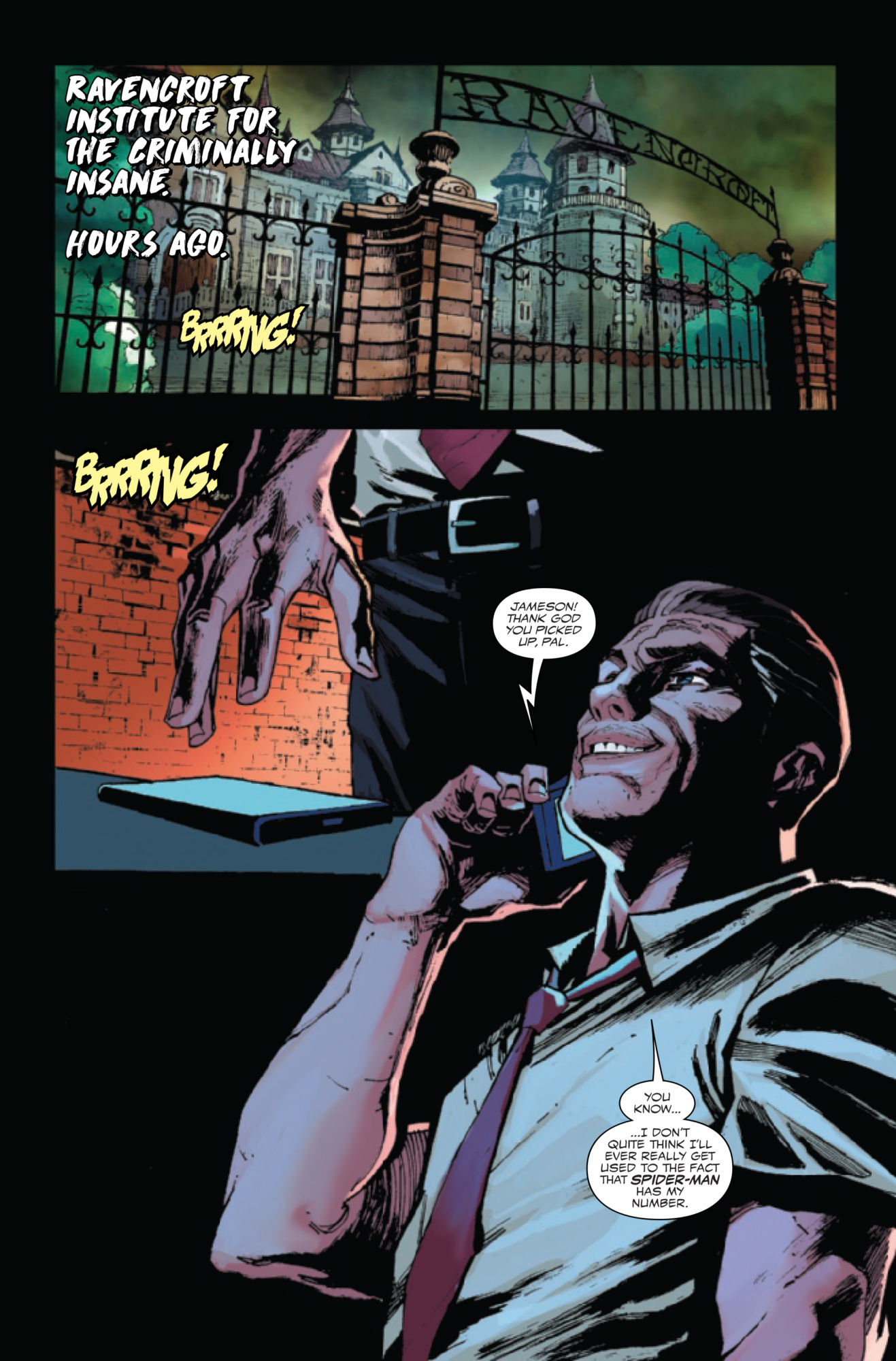 When he was last seen, John Jameson was being recovered from the scene of a massacre in Doverton, Colorado, by Misty Knight. Since then, they've both been MIA. So how, then, are they the only two people poised to prevent chaos as a mysterious foe of Spider-Man's is RESURRECTED in the basements of RAVENCROFT INSTITUTE FOR THE CRIMINALLY INSANE?!