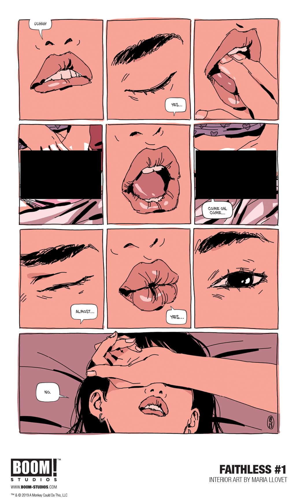 BOOM! Studios today announced FAITHLESS #1, from New York Times bestselling writer Brian Azzarello (Batman: Damned) and artist Maria Llovet (Loud), with Eisner Award-winning artist Paul Pope on covers in an unforgettable story of self-exploration, eroticism, and…maybe even love.