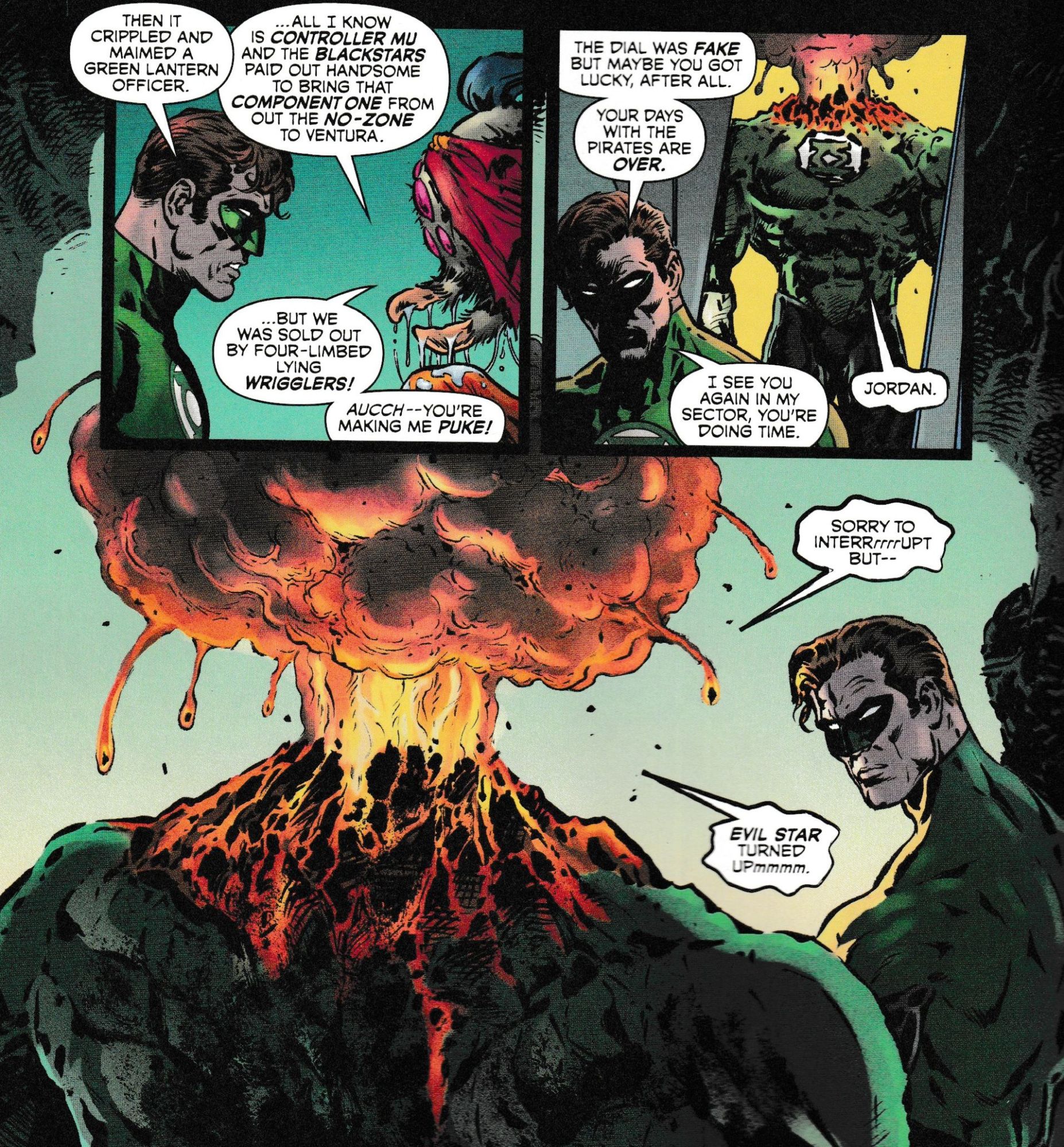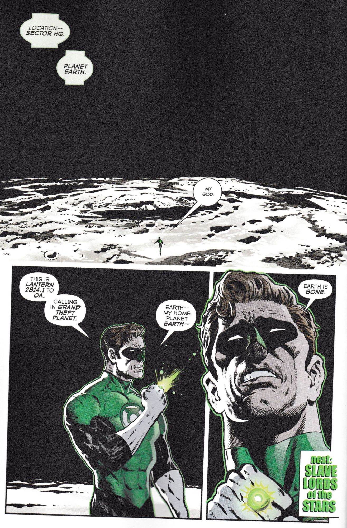 Someone is transporting a mysterious cargo out of the Great Void, and it spells trouble for the universe at large! Hal Jordan interrogates a member of the Spider Guild for answers and uses his pheremones as an interrogation tool, but can he extract the info in time?! Meanwhile, Volgar Ro makes a play for Earth while its emerald protector is off-world!