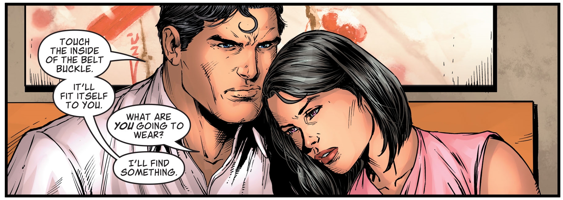 Turns out that Superman gave his tightless costume to Lois Lane as she begins her great journey with their son Jonathan Kent. And also helps Bendis get rid of Lois, Jonathan, Kara, and Jor-El from clogging up his continuity so he can get on with telling just-Superman stories for a good long while.