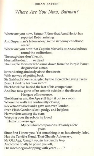 This is the original version of Brian Patten's poem Where Are You Now, Batman? as published in The Mersey Sound in 1967.