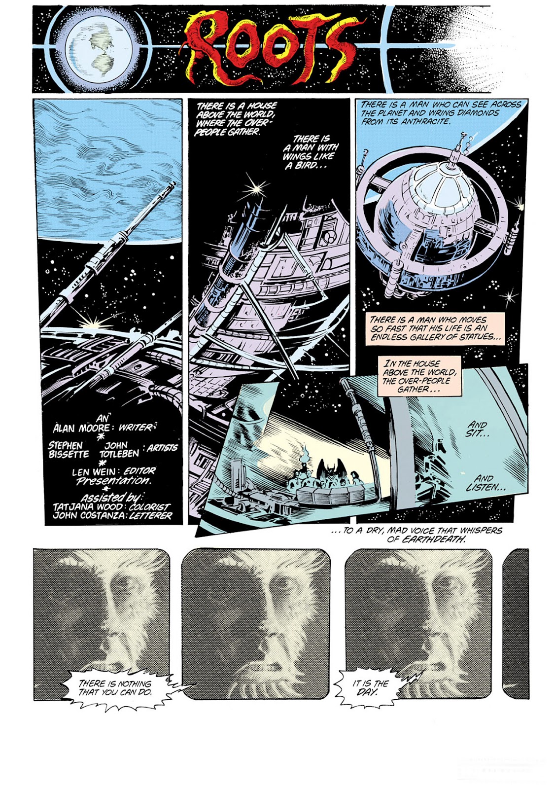 It has been revised significantly since by the author over the years. But this poetical description of what were then seen as the lowliest forms of pop culture is considered an influential take on how Alan Moore would later sometimes write about superheroes. Moore stated: "It made you think, 'Ah! If only they'd look at those characters with a bit of poetry in the comics themselves!' I think that's where my attitude came from" with a scene from five issues into his Swamp Thing run, The Saga of Swamp Thing #24 being a prime contender.