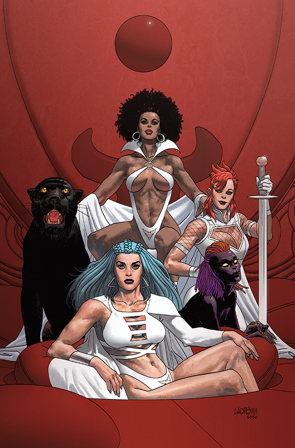 A Who's Who of top cover artists are tagging in for the big debut issue and subsequent ones. Jae Lee leads the pack. One of the hottest cover artists today, Lucio Parrillo (Vampirella, Dejah Thoris), focuses on Chastity, Draculina and Nyx. With fans skyrocketing her career and garnering acclaim for her Vampirella covers, Meghan Hetrick (X-Men/Fantastic Four) is a natural addition. Rod Reis (New Mutants) captures the power and sensuality of these women with a rooftop lineup. While the incredibly talented and versatile José Ladrönn (Cable, Final Incal) chips in. An incentive cover from Joseph Michael Linsner (Red Sonja, Dawn) showcases the women in schoolgirl outfits, and an Icon Incentive remasters definitive Pantha artist Mark Texeira's (Ghost Rider, Wolverine) cover from Vampirella (2001) #8.