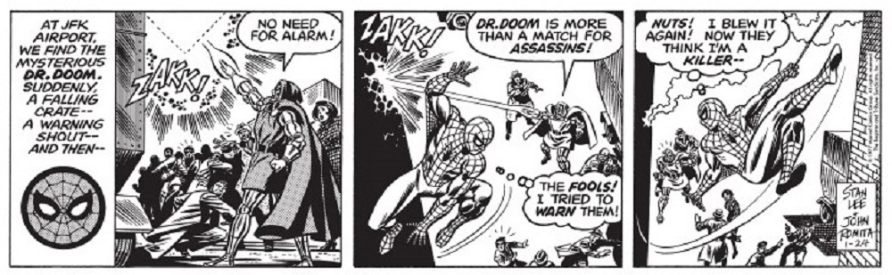 BC: What are the strengths of the Amazing Spider-Man in newspaper strip form? It has gone now in this year into its 40th anniversary (surprised no one has made a big deal about that) so the adventures of Spider-Man obviously work in the strip format…