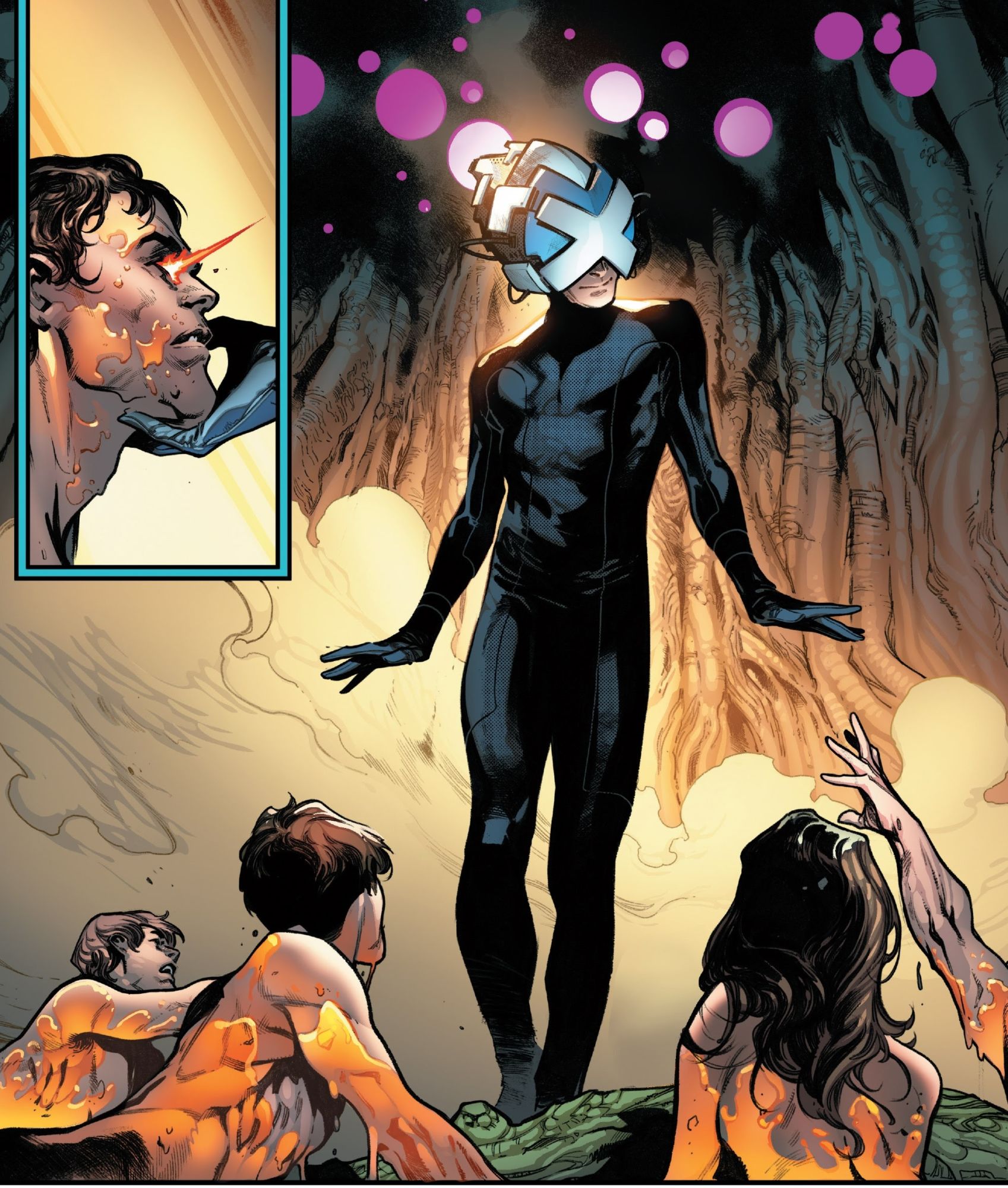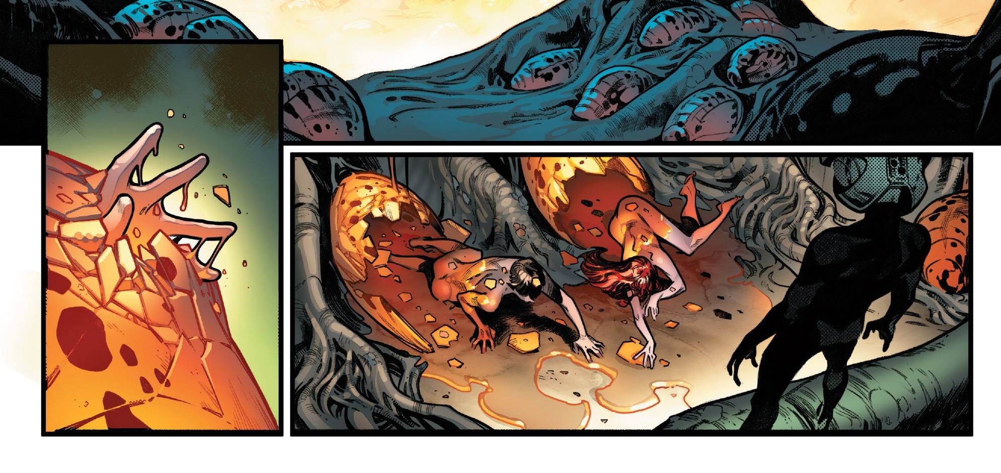 But wouldn't the other mutants recognise he wasn't Xavier, even only by his chin? And seem happy to go along with him even though his ideals have radically changed? Well, what if they are not the X-Men either? The issue does open with the supposed-Xavier bursting opening pods of people seemingly grown by Krakoa – and one of them has Cyclops style bursting eyeballs.