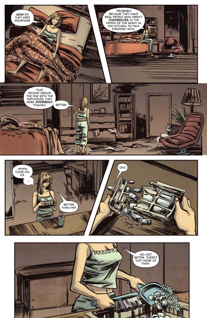 Let's check in with Jaime, who had to have thought helping out with security at Naris would be an easier gig than OSI. Jaime is fiercely loyal to Oscar, whom she not only loves dearly but also feels she owes her life. Jaime (understandably) finds these break-ins extremely peculiar, and they have started to plant a seed of doubt – if not, quite yet, in her mission, then perhaps in her ability to fulfill it.