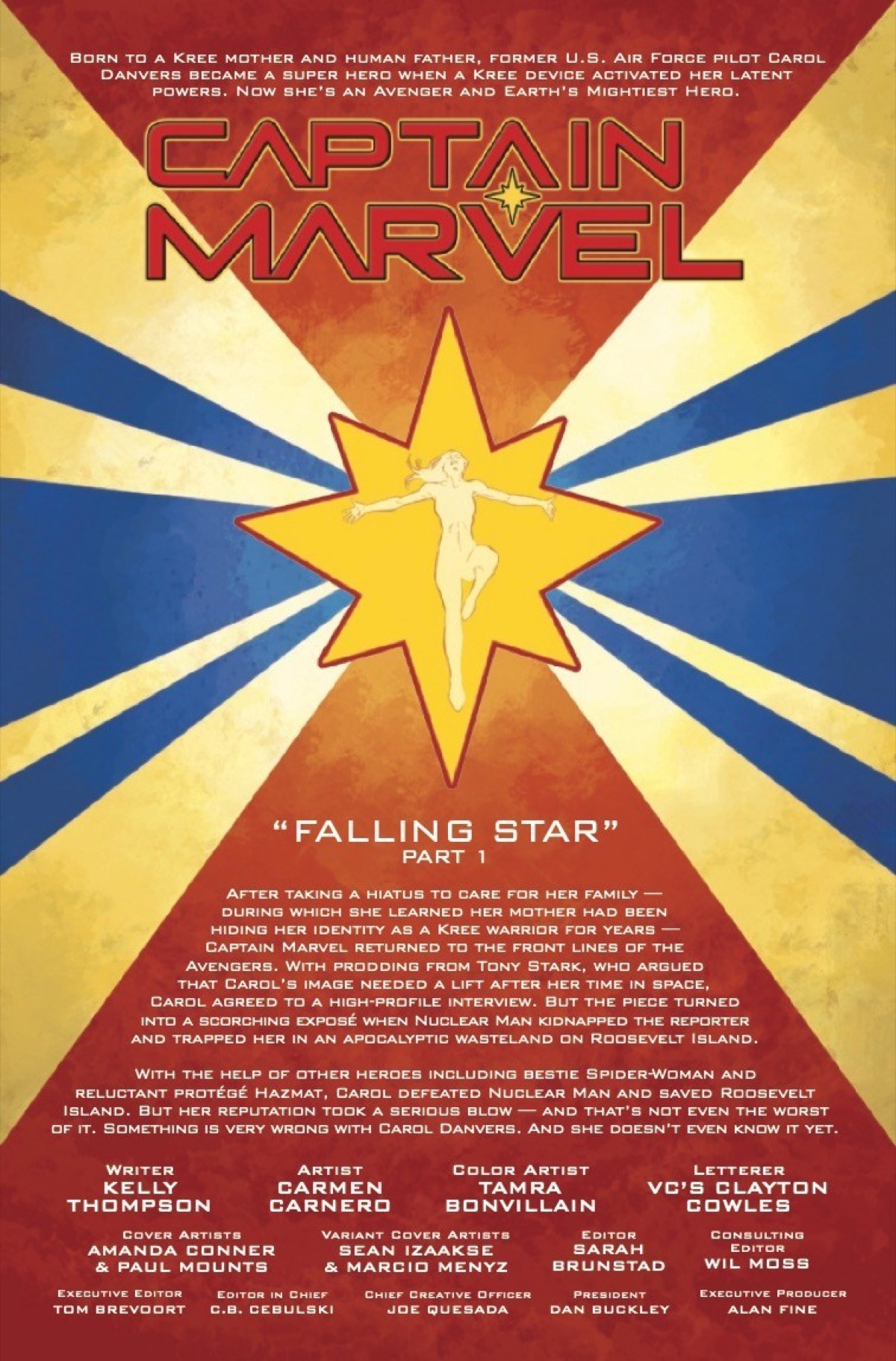 CAPTAIN MARVEL: FALLING STAR! From the moment she returned to full-time Avengers duty in New York City, Captain Marvel's life has been nonstop…and slightly weird. But she's about to take on a brand-new threat – and a very old one! When her Kree heritage is exposed to the world in dramatic fashion, Carol goes from most beloved hero to public enemy number one overnight – and it's pushing her to the darkest edge. Can she save the day even while the world turns on her? Does she want to?