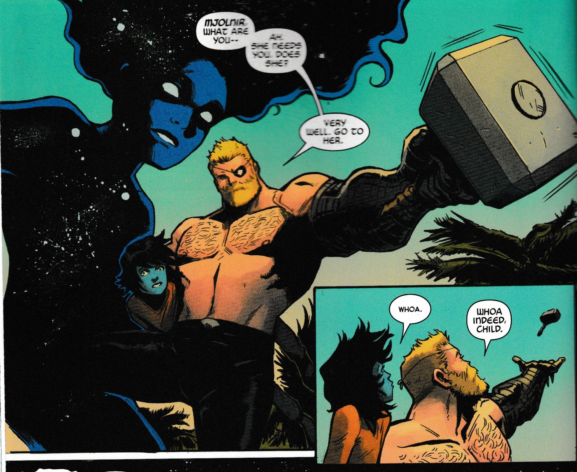 Today, as teased on the cover, Carol Danvers, Captain Marvel, does get to be the latest to wield the hammer. Though she does have to ask nicely.