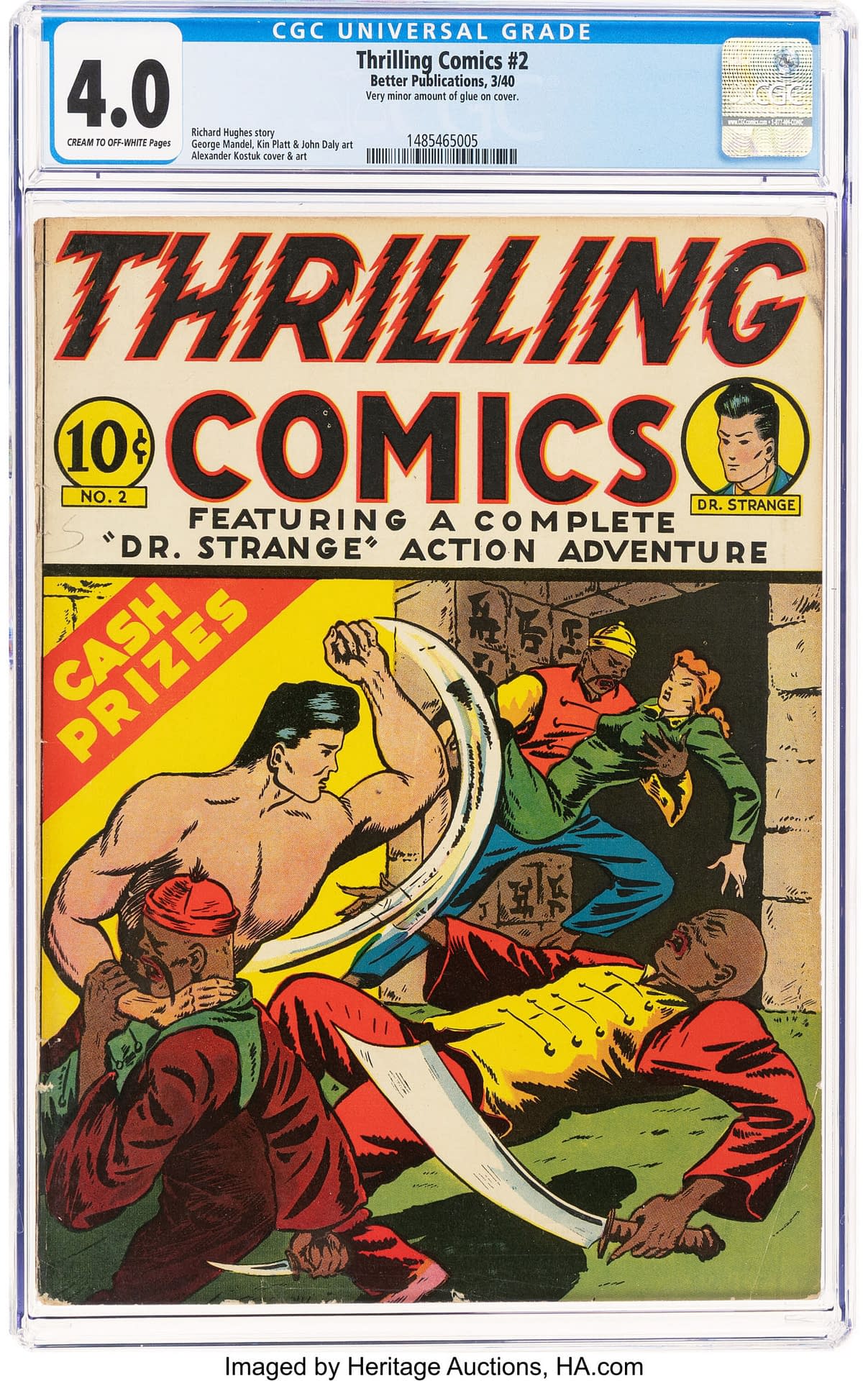 Interestingly, the Woman in Red occasionally used Bond-like gadgetry, such as a "tear-gas fountain pen" in Thrilling Comics #4, and special bullets capable of penetrating bullet proof vests in Thrilling Comics #5. As for the rest of the contents of Thrilling Comics #2, this issue also includes the first of a multi-part adaptation of the fairy tale Pinocchio, likely done to take advantage of the publicity surrounding the Walt Disney animated feature film released while this issue was on newsstands. Heritage notes that this is one of the most challenging issues of the series, with only 15 unrestored copies on the CGC census. This CGC VG 4.0 Cream to off-white pages copy of Thrilling Comics #2 (Better Publications, 1940) is up for auction in the 2025 September 18 Golden Age Comics Century Showcase Auction II at Heritage Auctions. There are several other issues of Thrilling Comics available as well.