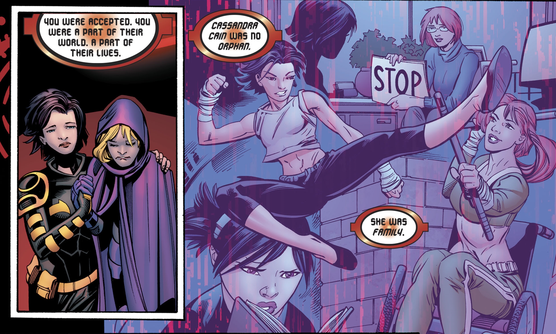 And they both get a precis of what the New 52 did away with. Cassandra, no longer an Orphan in both senses.
