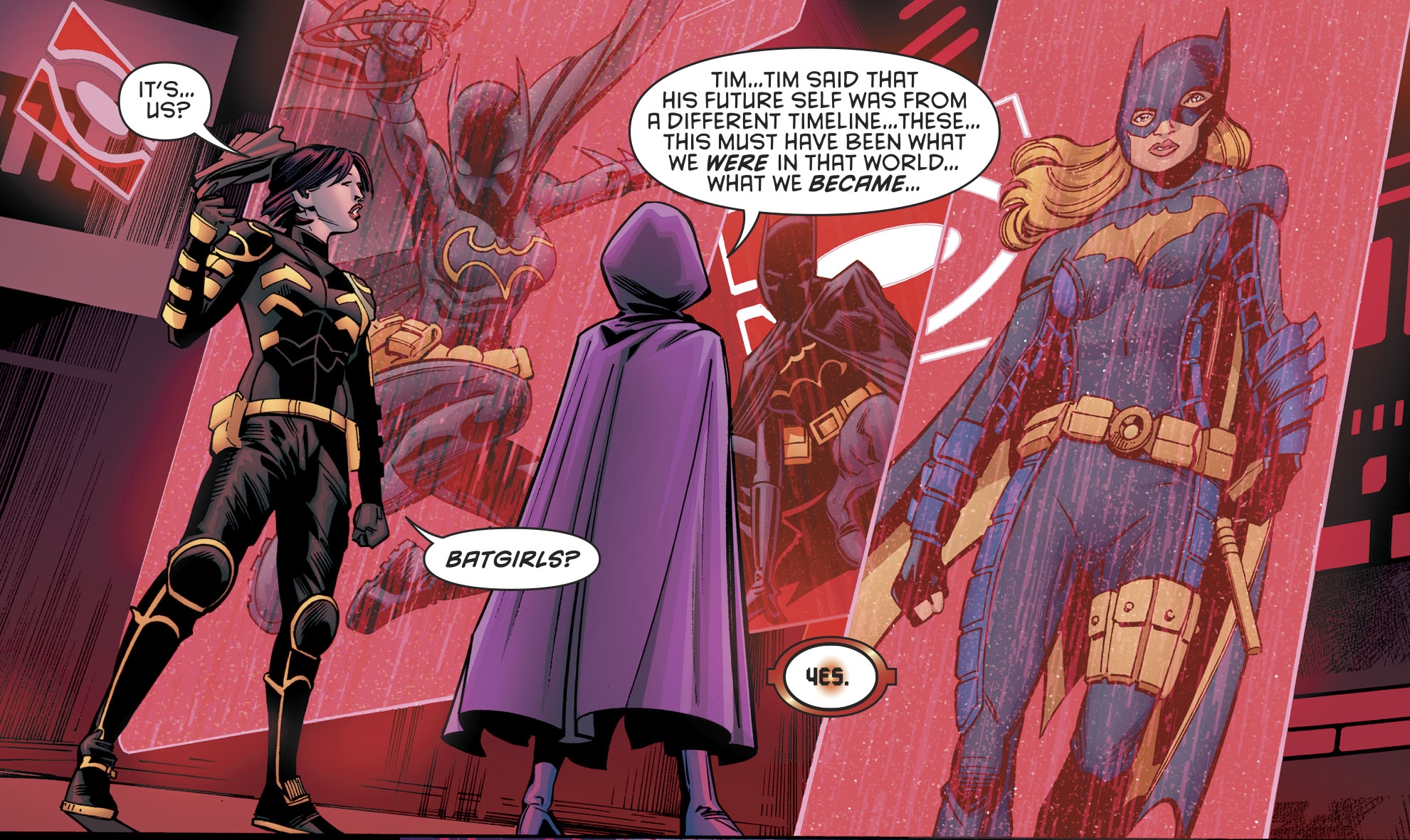But it turns out, it's not the vision of the DC Rebirth future, nor the New 52 future. But of the Pre-52 version, before Dr Manhattan's meddling with the timeline. Which means Cassandra Cain and Stephanie Brown, Orphan and Spoiler, get an idea of what may have been.
