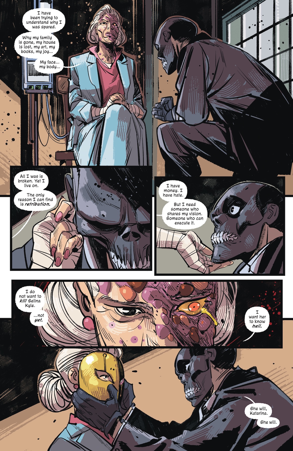 - Preview pages reveal Katarina Belov seeking revenge after Selina humiliated her and stole her treasured possession, leaving her disfigured by uranium poisoning