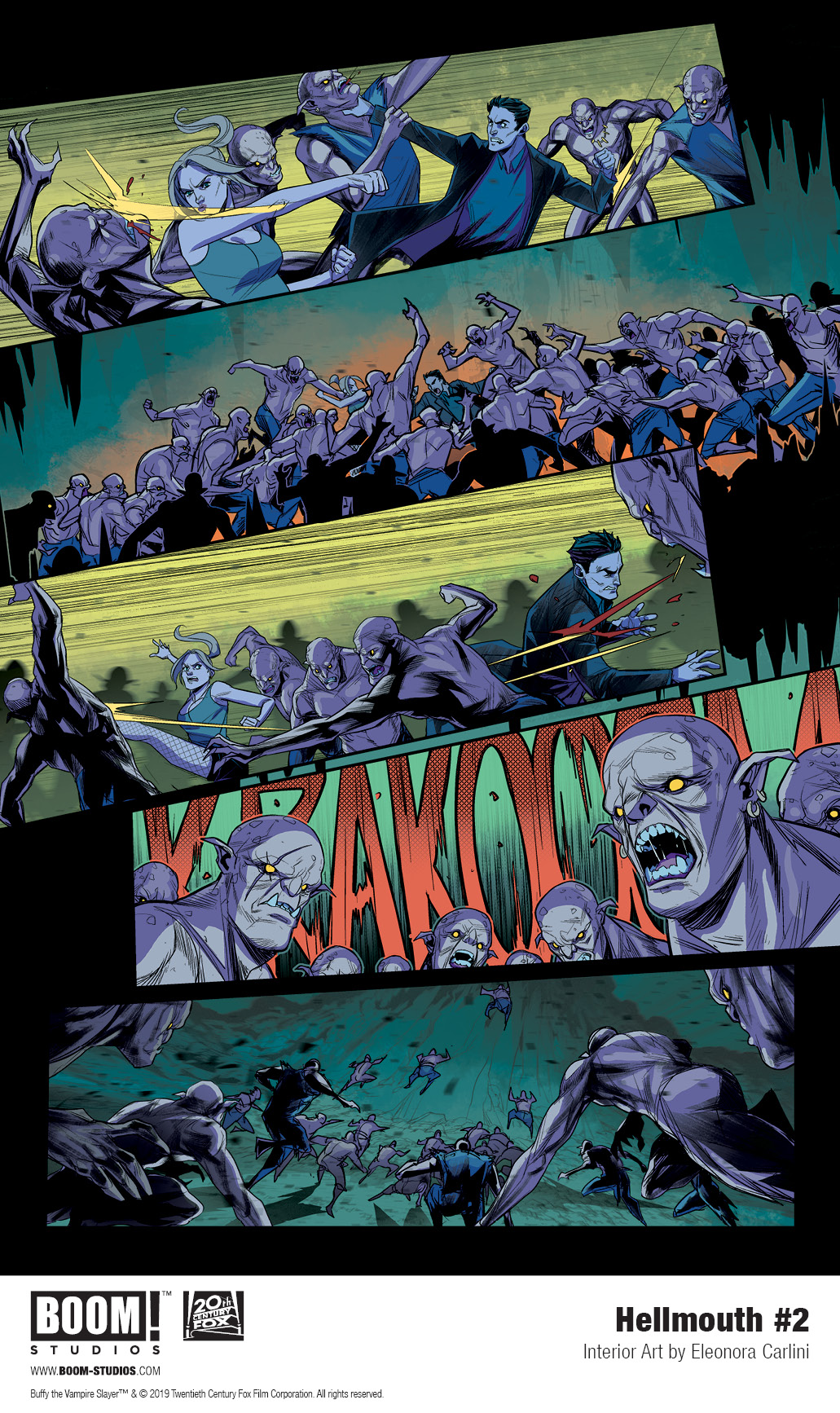 It's Halloween and explosive publisher BOOM! Studios has a treat for you! No, it's not marijuana edibles disguised as Halloween candy. What self-respecting stoner would give away their stash like that?! What BOOM! has is much better than candy, a first look at Hellmouth #2, the next issue in the Buffyverse super-mega-crossover event by Jordie Bellaire, Jeremy Lambert, and Eleonora Carlini.