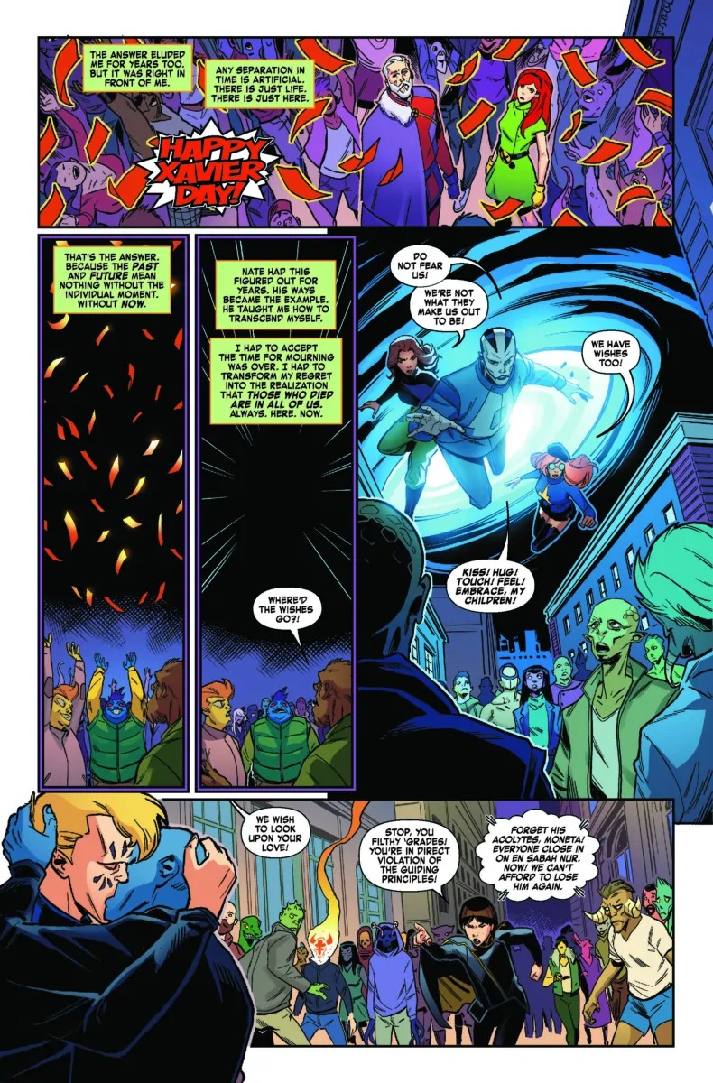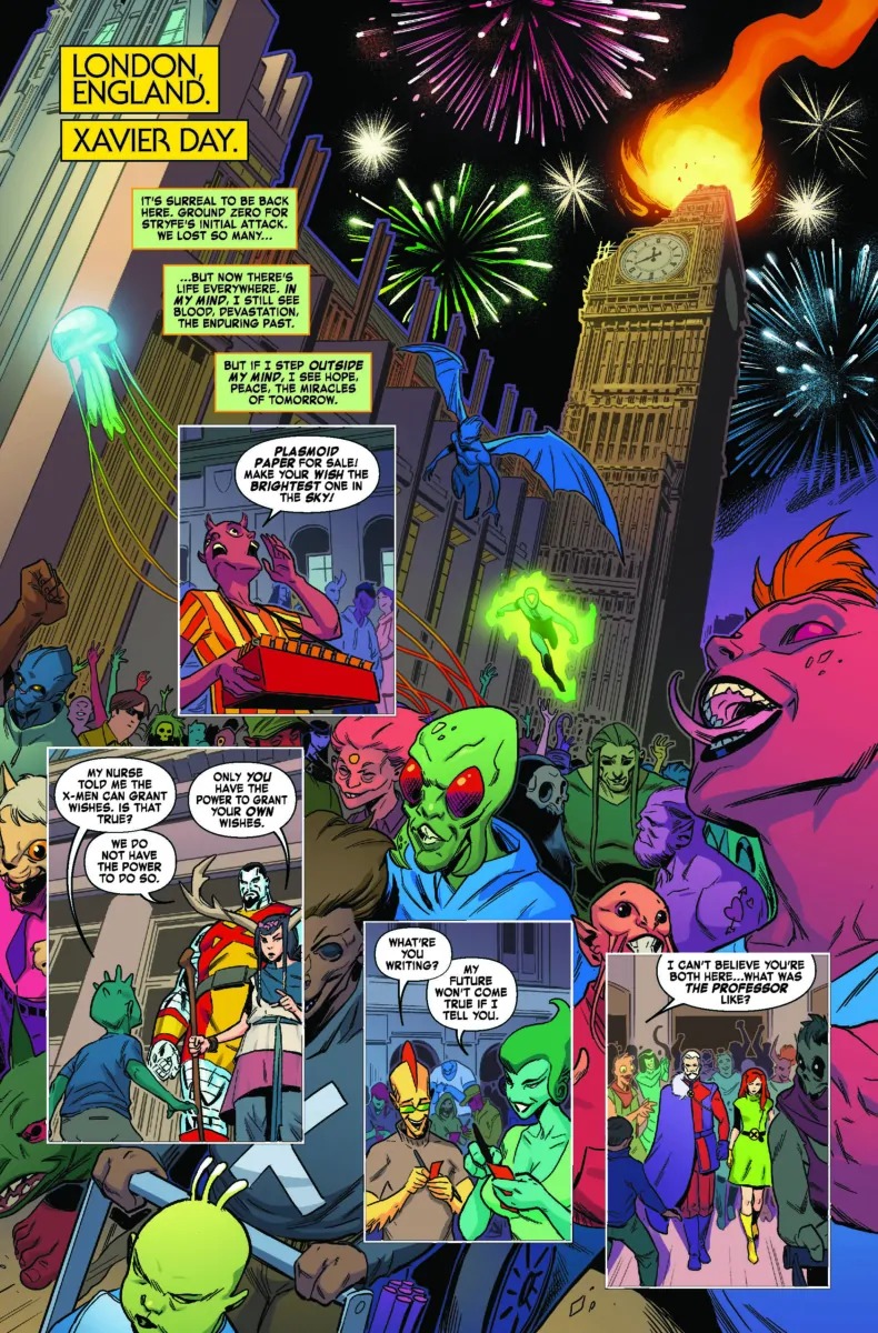 Next week's Age of X-Man: Marvelous X-Men #4 takes a look at an important question: does Charle Xavier f***? Of course, X-Men fans already know the answer, which is, yes, Charles Xavier f***s a lot. But it's something that the mutants living in Nate Grey's repressive dystopia seem to have forgotten. Luckily, Apocalypse and his X-Tracts are here to remind them when they invade the Xavier Day celebrations in London, as we see in this preview…