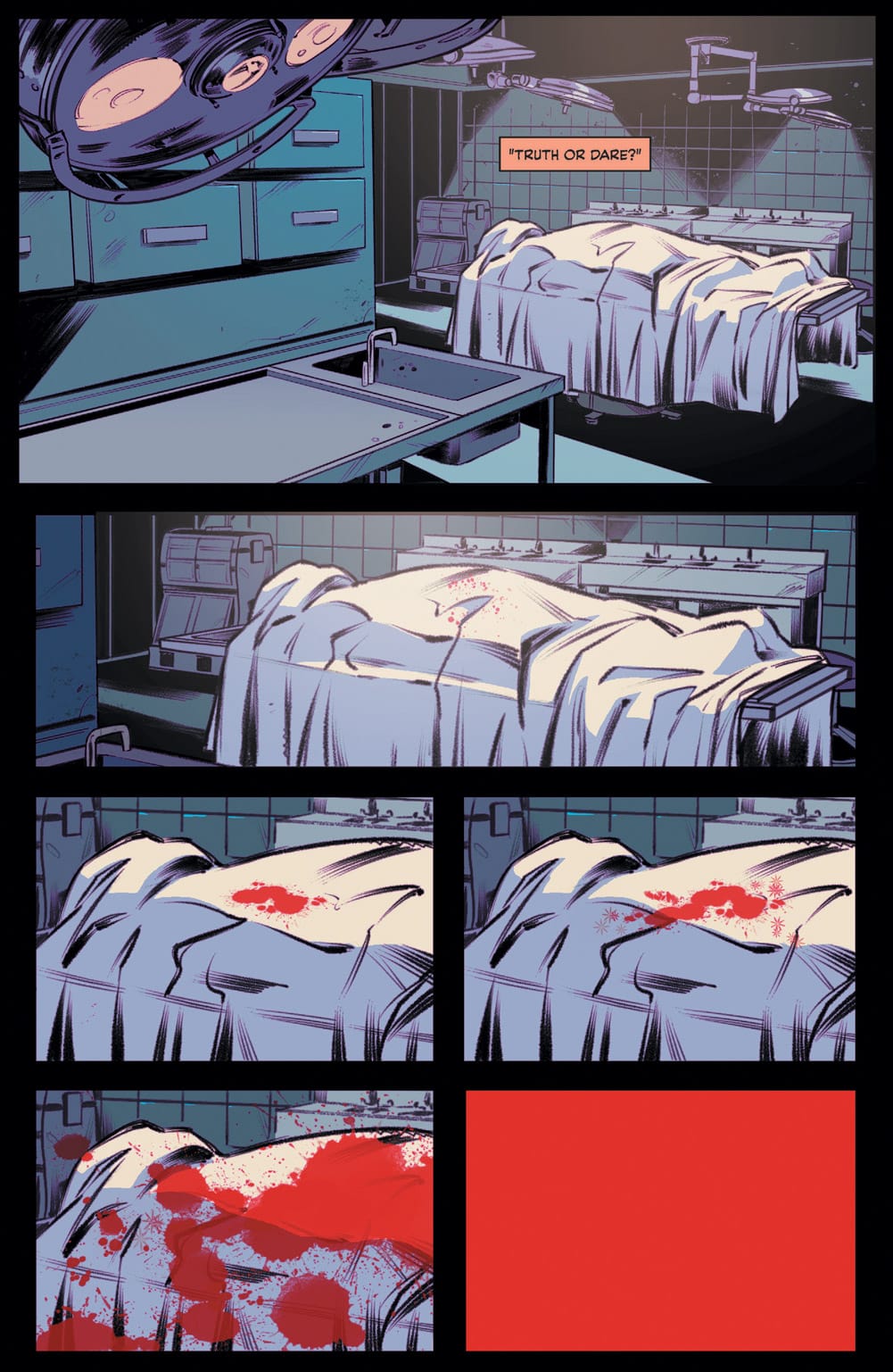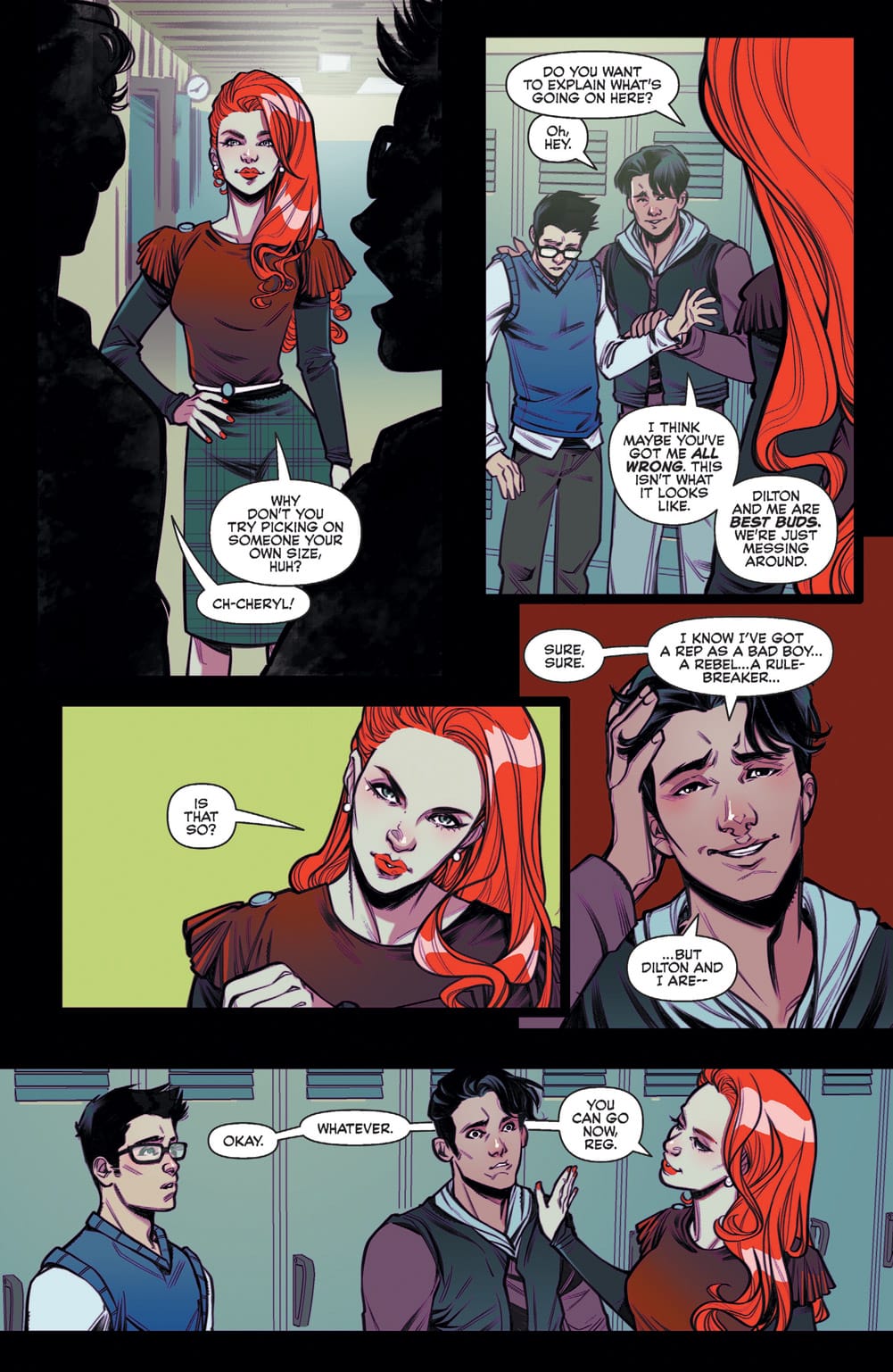 Next week sees the launch of Blossoms 666, the latest comic in Archie's horror line in which one of the Blossom Twins is the Anti-Christ… though which one has not yet been revealed. Archie has released a preview of the issue, however, which starts out ordinarily enough (you know, aside from the morgue scene), as Reggie bullies Dilton, that is, until Cheryl Blossom shows up to save the day and offer Dilton some advice.