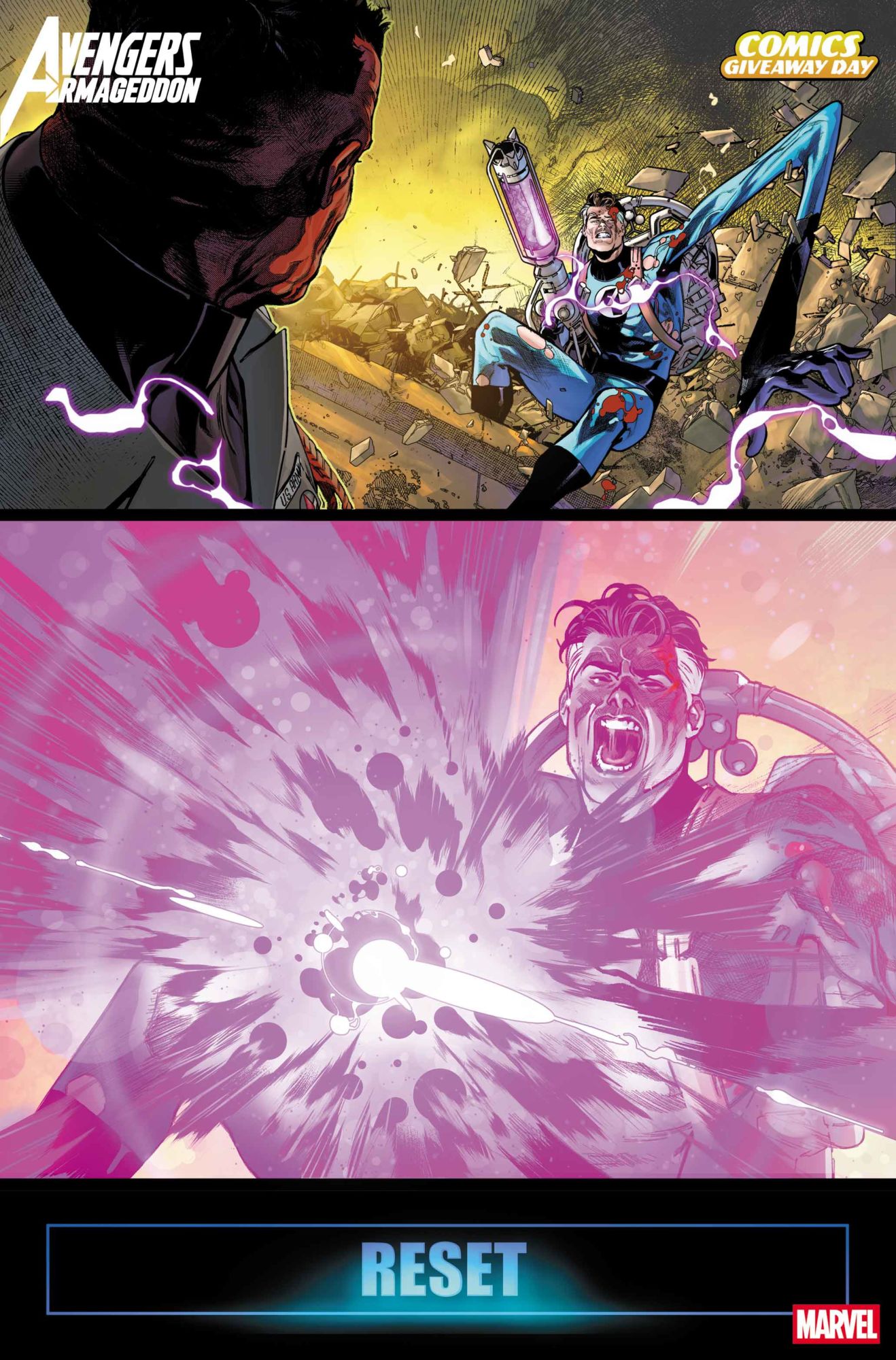 Talking of whom, he stated that he made the decision to move new Captain America artists Delio Diaz and Frank Alpizar from Captain America directly onto the five-issue Avengers: Armageddon core series, despite chopping and changing the artists on Cap. "As soon as I saw their first pages, I was just like oh my god, these guys are just like on another level. It's great having them on there, but then we start talking about like artists for Armageddon, I was just, I think it's got to be them. They're just that good.," Zdarsky explained that, when discussing the duo's contributions during their guest arc on Captain America, he and Marvel decided to assign them to the bigger event book, even though it meant disrupting the ongoing series' artist lineup. "It felt right to let them loose on the bigger stage."