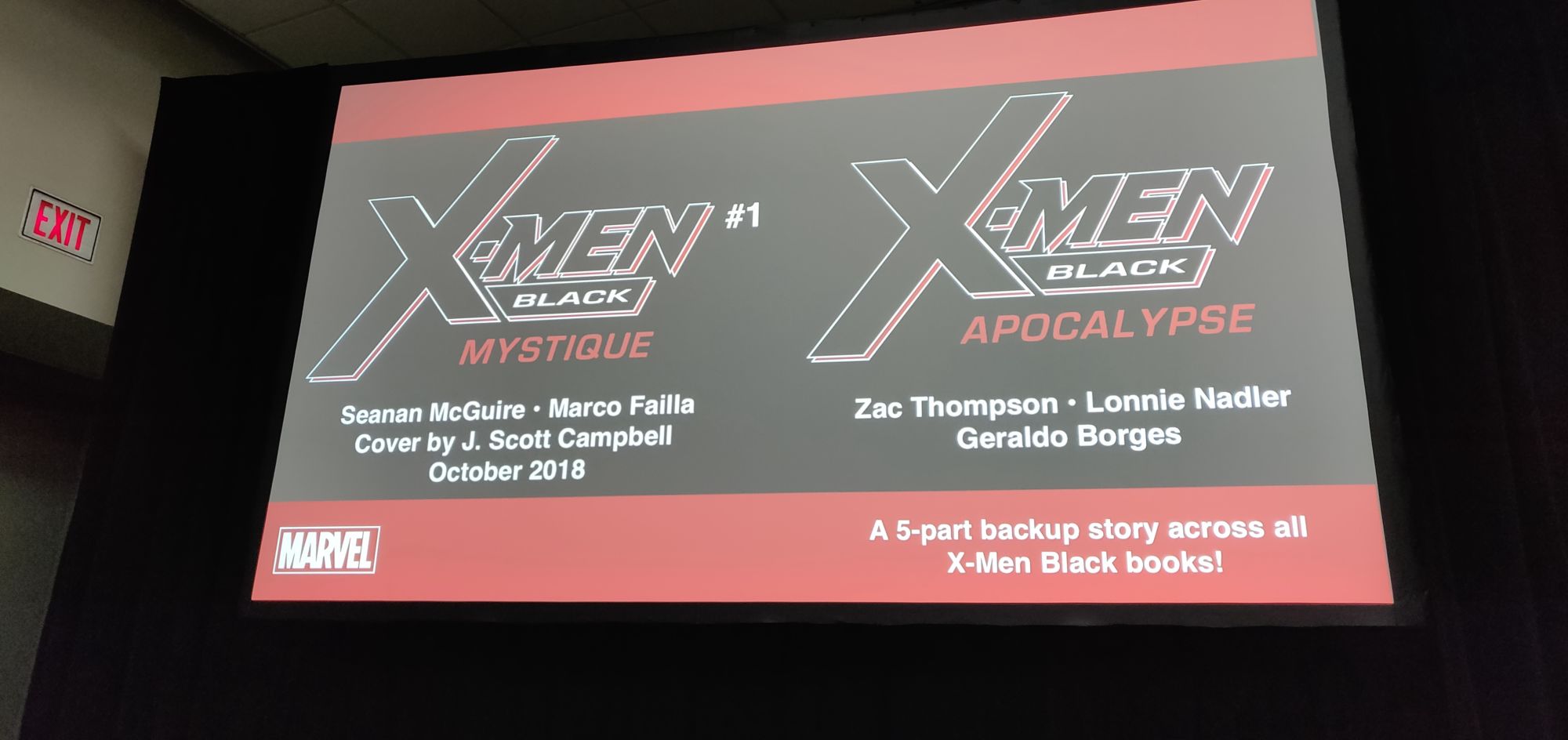 Look for X-Men Black in stores in October. Will it herald the return of Uncanny X-Men the following month? Stay tuned, that could still be revealed at the panel!