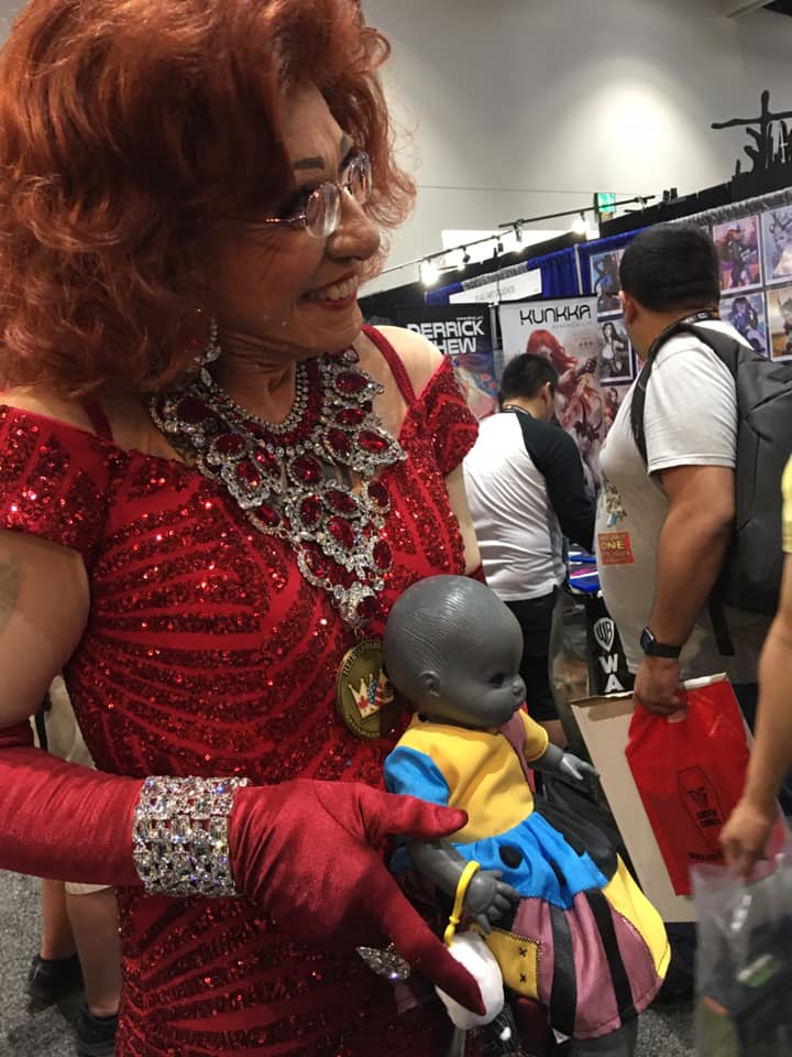 What I just said may sound overly dramatic, but word has already reached me that my advocacy for Transgender and gender-fluid children in Denver has potentially put me in the gunsights of some very dangerous people. White Nationalists and Proud Boys are not pleasant adversaries. So be it. I will not back down and I will not hide, but I will continue stand up and give voice to all my people. Most especially here at the 50th San Diego Comic-Con, where all are welcome and loved. Walking around this show in a beautiful gown is my public statement of commitment to my people, and most especially to our children, many of whom contemplate suicide on a daily basis. Never, ever, will I abandon my responsibility to give hope to those who most need to see it in the adults in their lives.