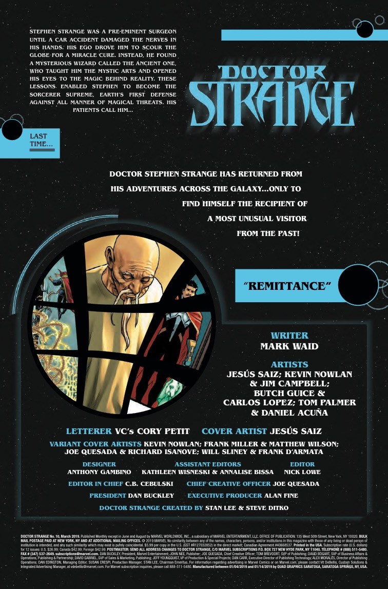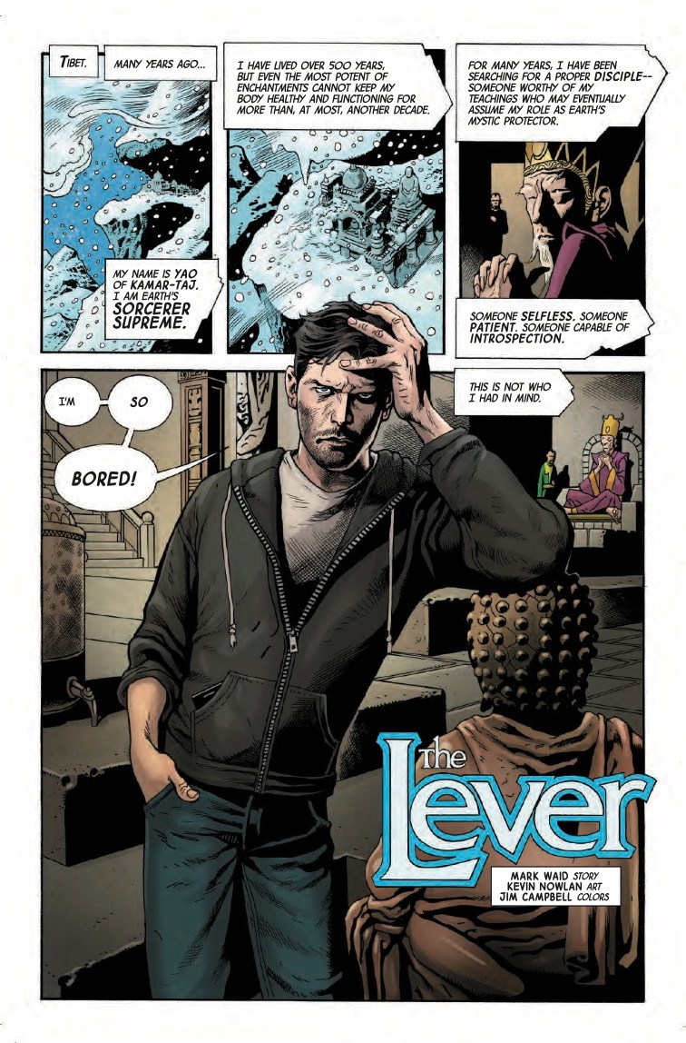 Creative team Mark Waid and Jesus Saiz are joined by some of the best DOCTOR STRANGE artists of all time to tell a monumentally strange tale! Someone has been working in the background since the first issue, chipping away at Doctor Strange and other magicians, undercutting and depleting their magic, and the other shoe finally drops. Does Strange stand a chance against someone who can take his magic away with the snap of their fingers?