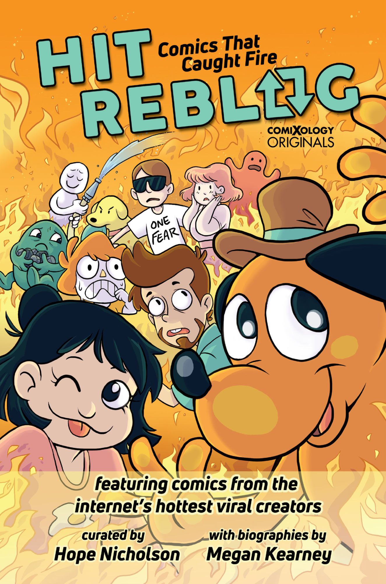 Hit Reblog: Comics That Caught Fire showcases the viral sensations of the webcomics world and the true stories behind their creators. Follow the ups and downs of internet fame, from IP theft to book deals, and all the trials of becoming an overnight sensation after gaining 10,000 reblogs in a single night. Learn about the origins behind the hit comic strips "This is Fine", "All Houses Matter", "No Take, Only Throw", and frequently-viral webcomics such as Owlturd, Cyanide and Happiness, False Knees, and Poorly Drawn Lines. Each of the twenty artists featured includes a biographical intro by award-winning comic artist Megan Kearney (Disney Princess, The Secret Loves of Geek Girls).