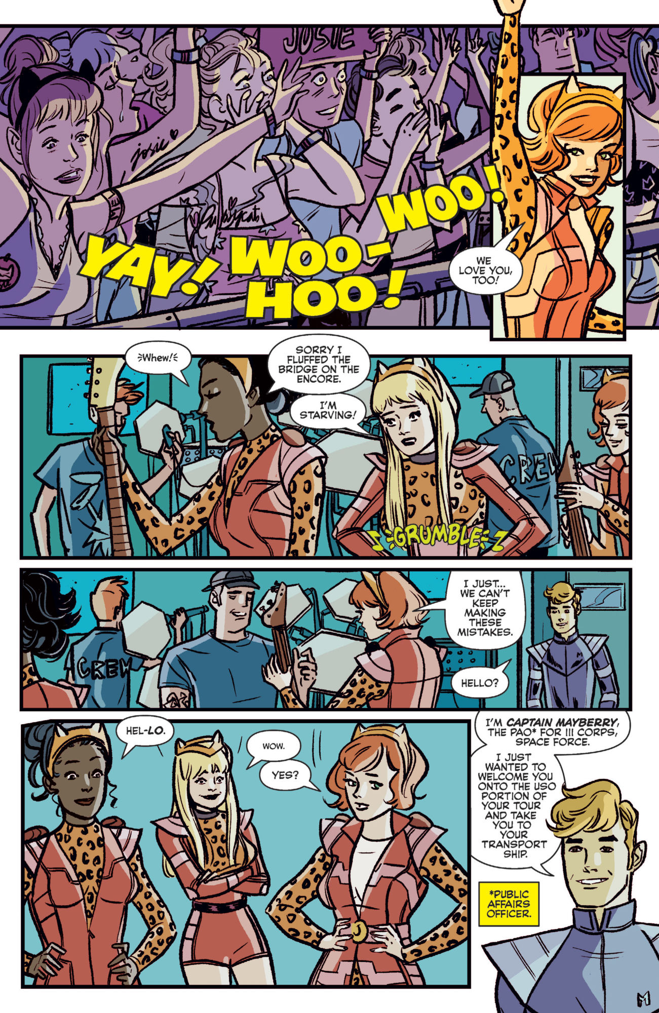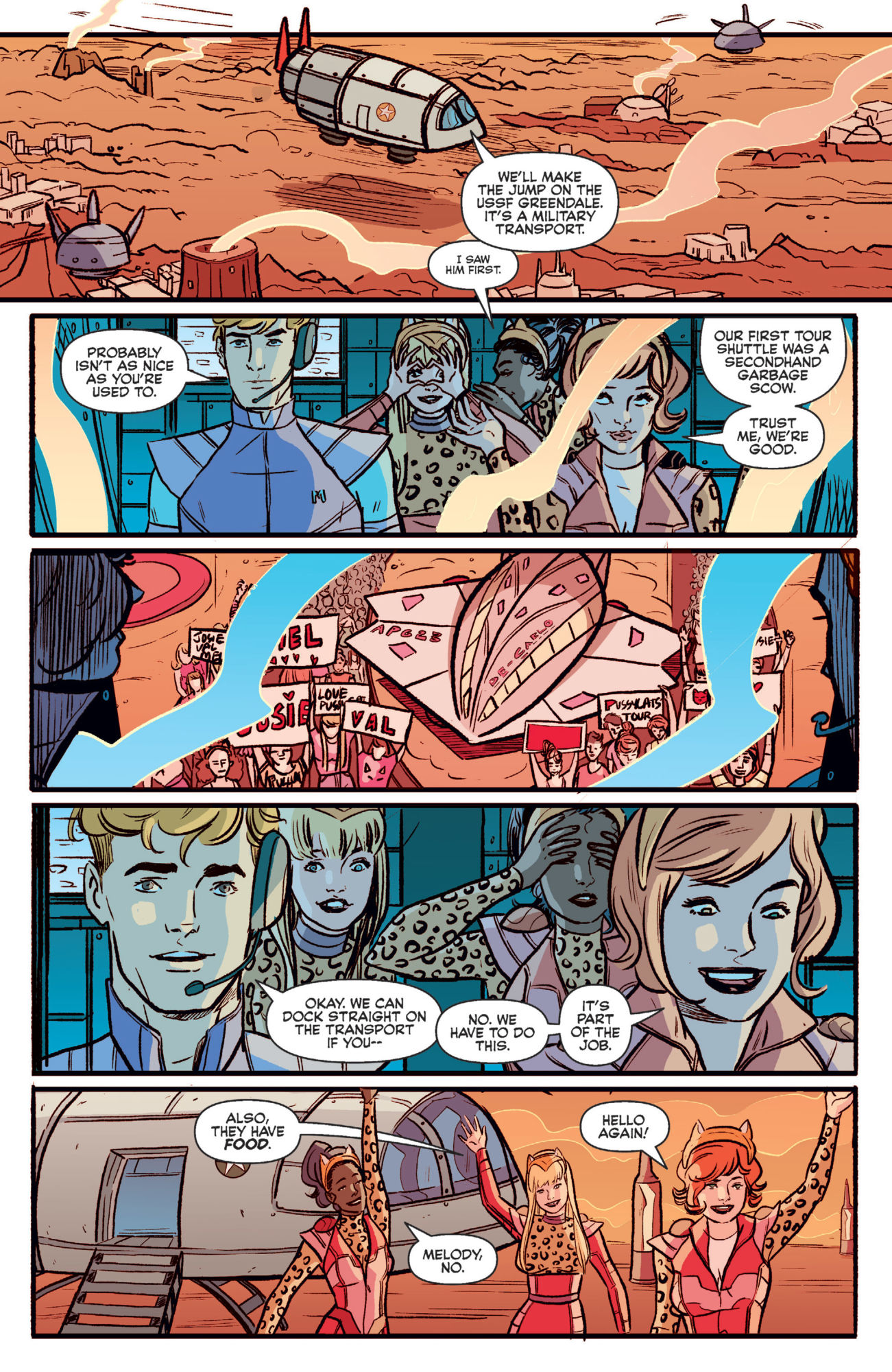 Written by Alex de Campi with art by Devaki NeogiArchie Comics' musical group Josie and the Pussycats goes on tour for the USO…in space.